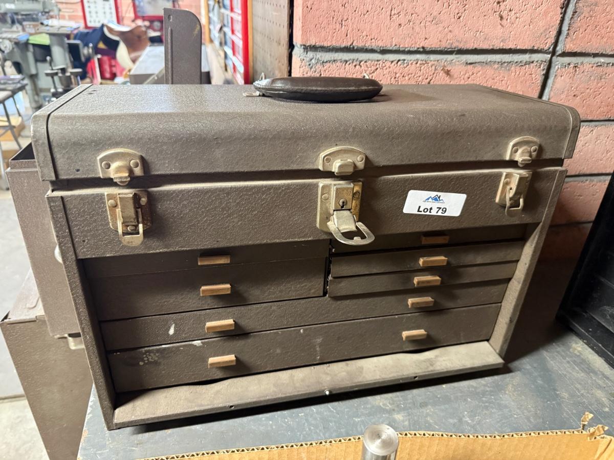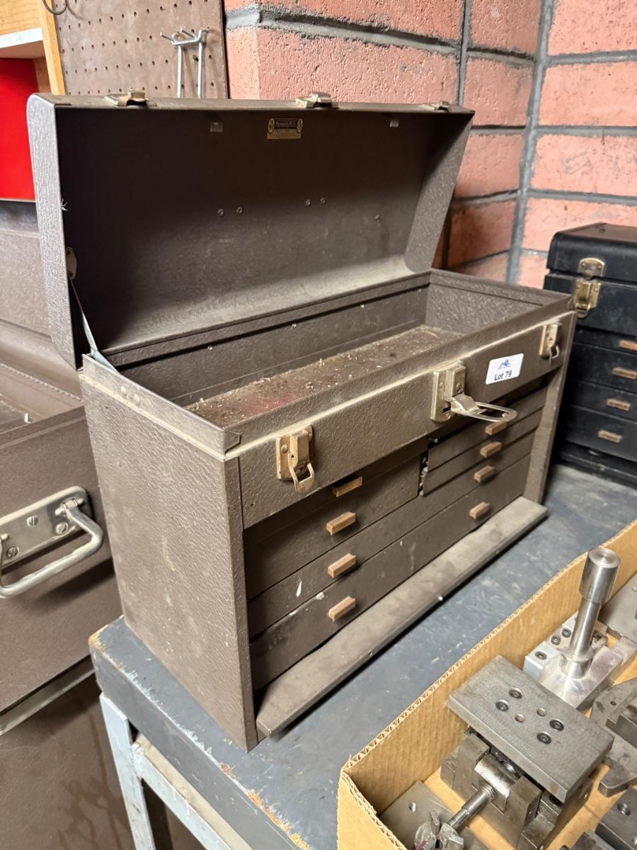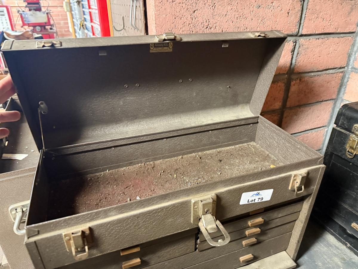 Brown Metal tool box with drawers & lift top
