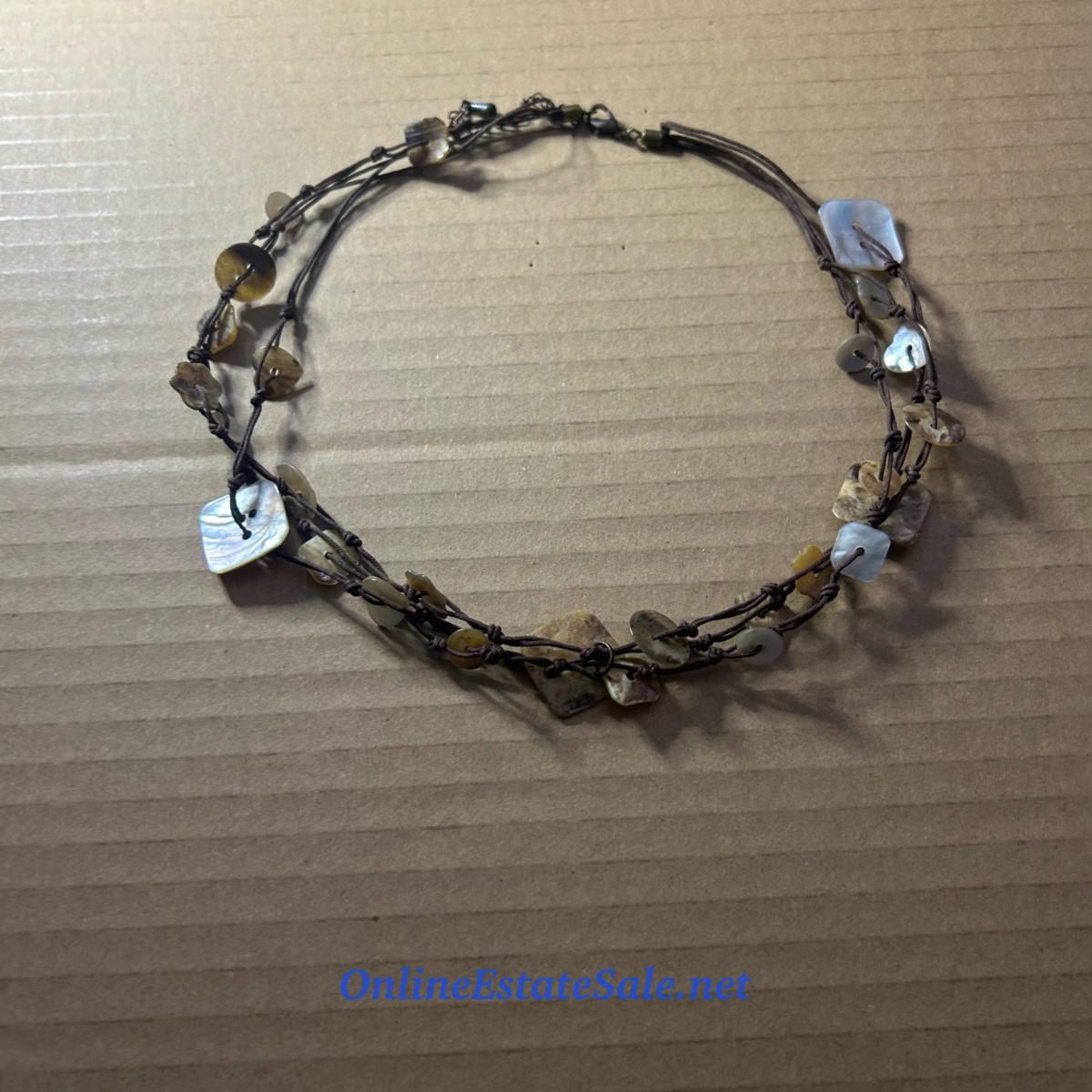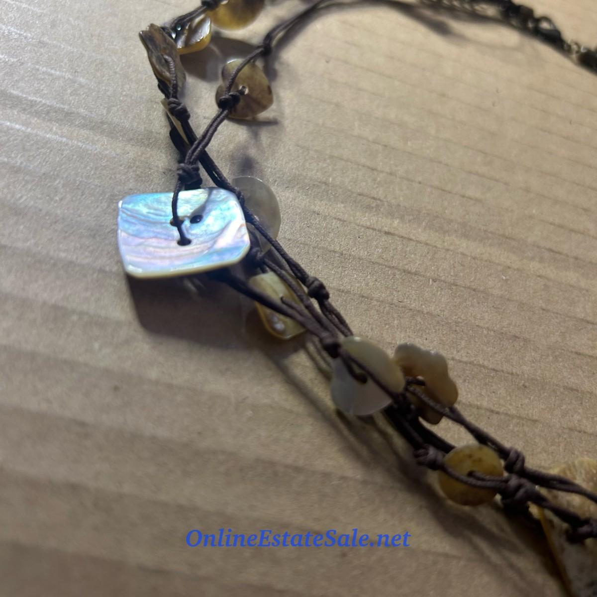 18in Brown Fabric Tri-Strand Necklace with Square Pendants and Heart Detail and Lobster Claw Clasp
