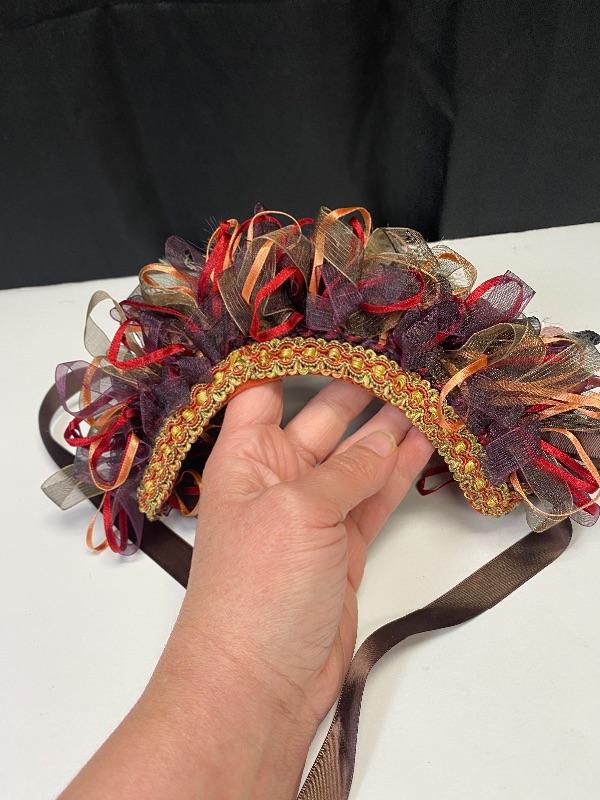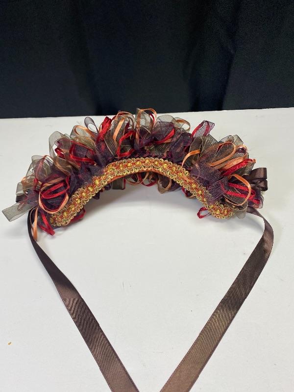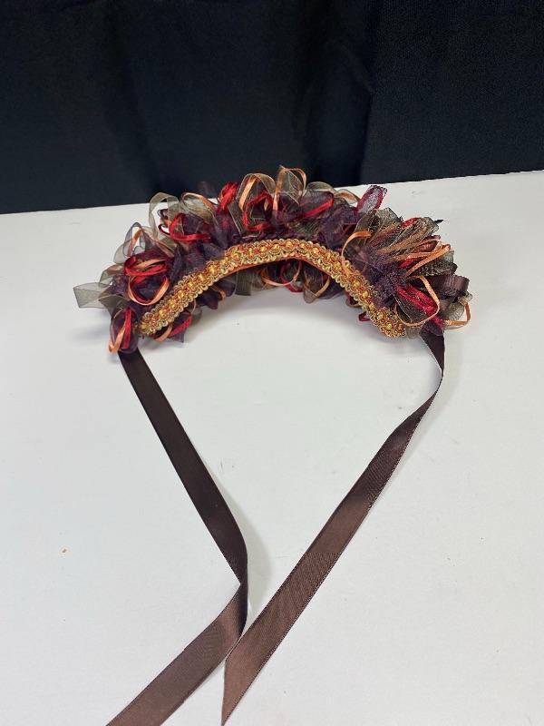Brown & orange ribbon head band. Looks very similar to the Russian kokoshnik head bands. In good condition.