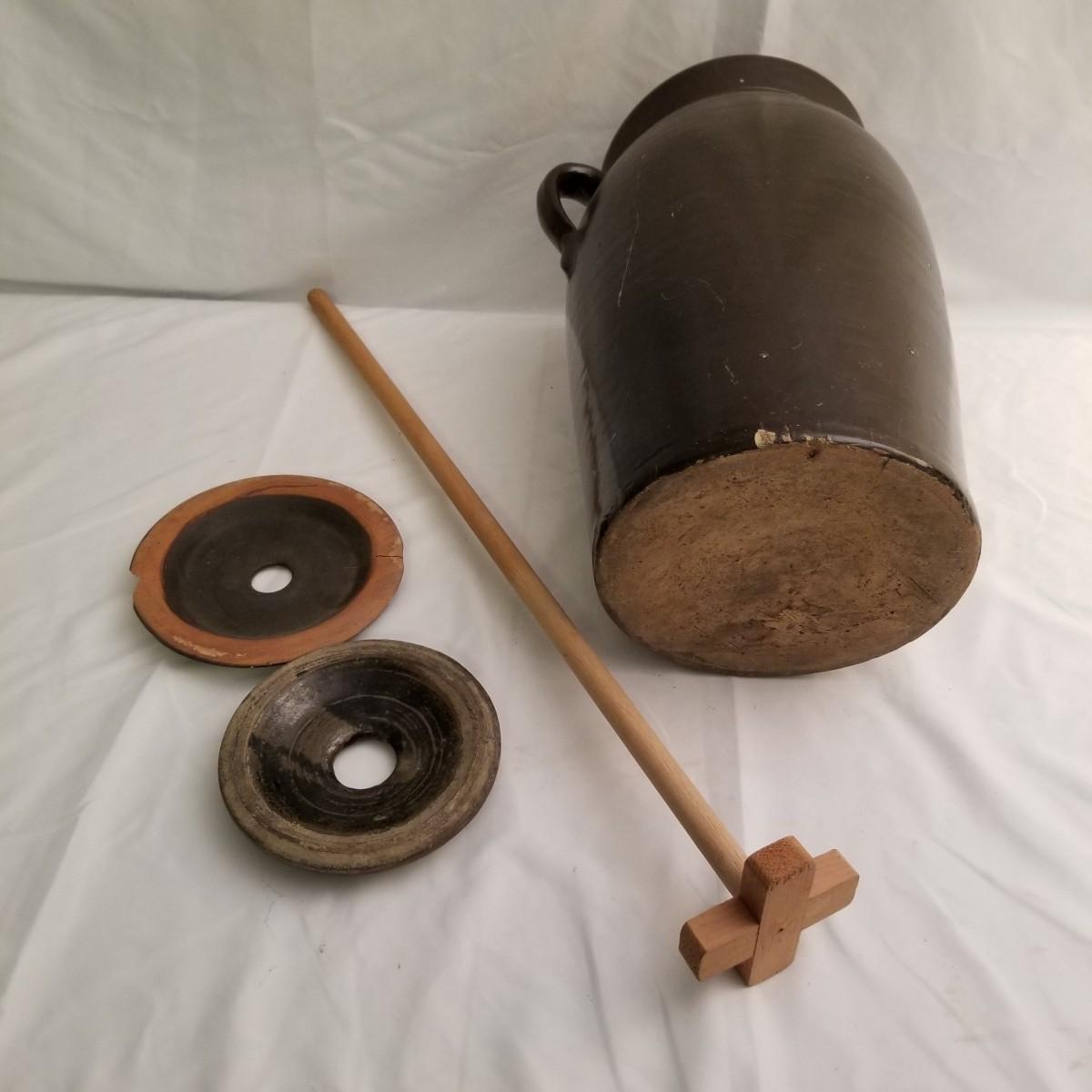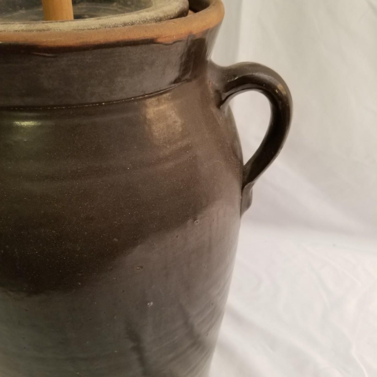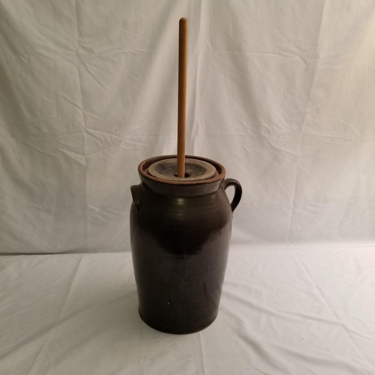 Brown Pottery #4 Butter Churn Crock (FR-JS)