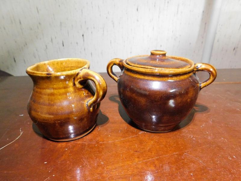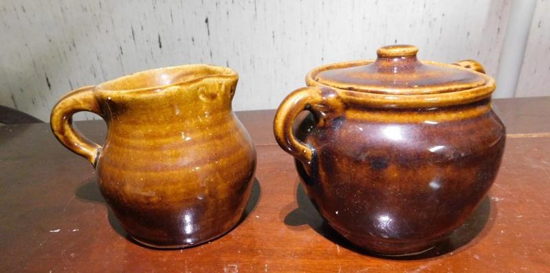 Brown Pottery Creamer and Sugar Bowl Set in good condiiton