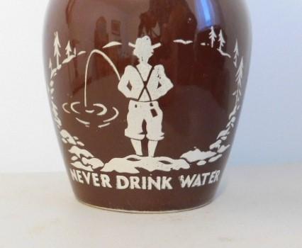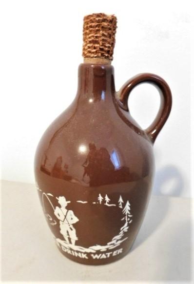 Brown Pottery Never Drink Water Corn Whisky Jug