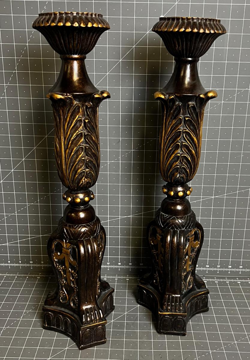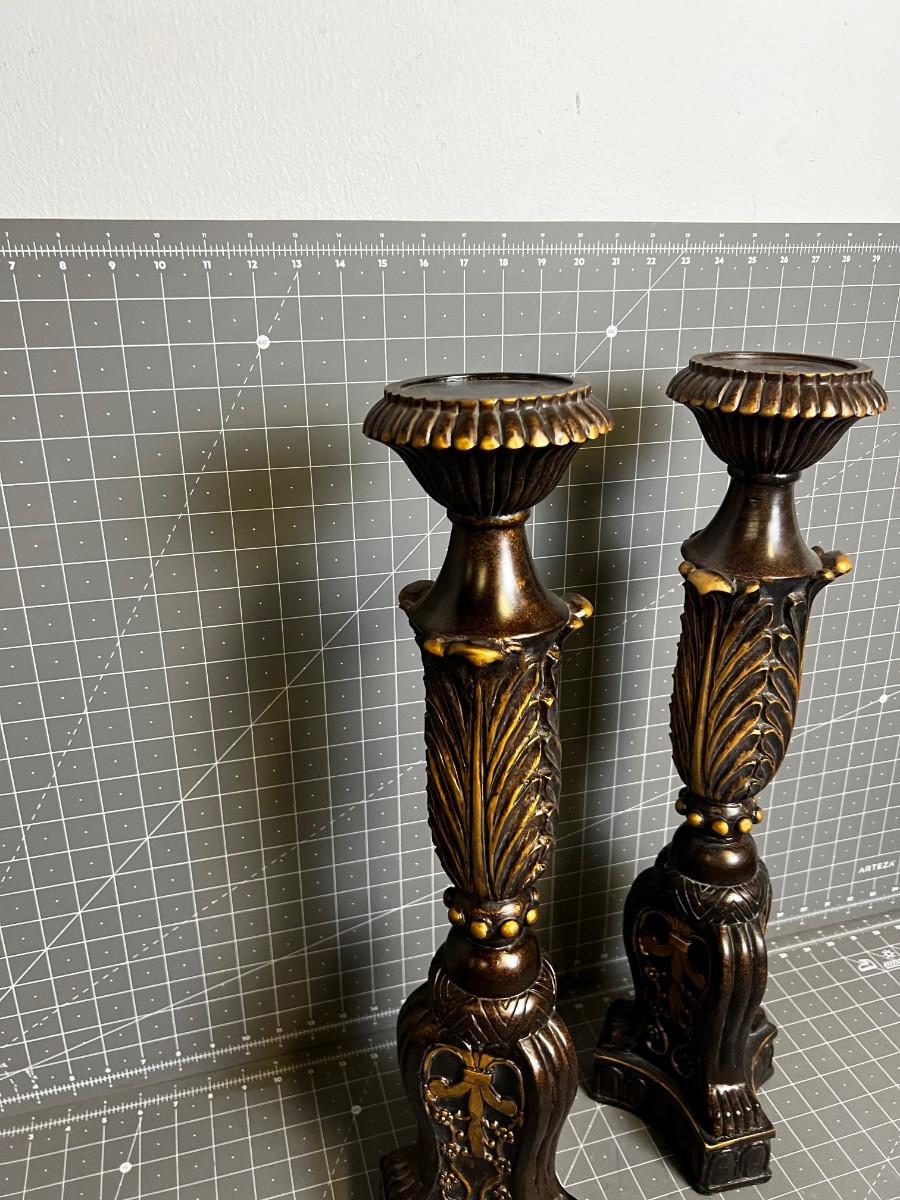 Brown Resin Candle Sticks with Gold Accent