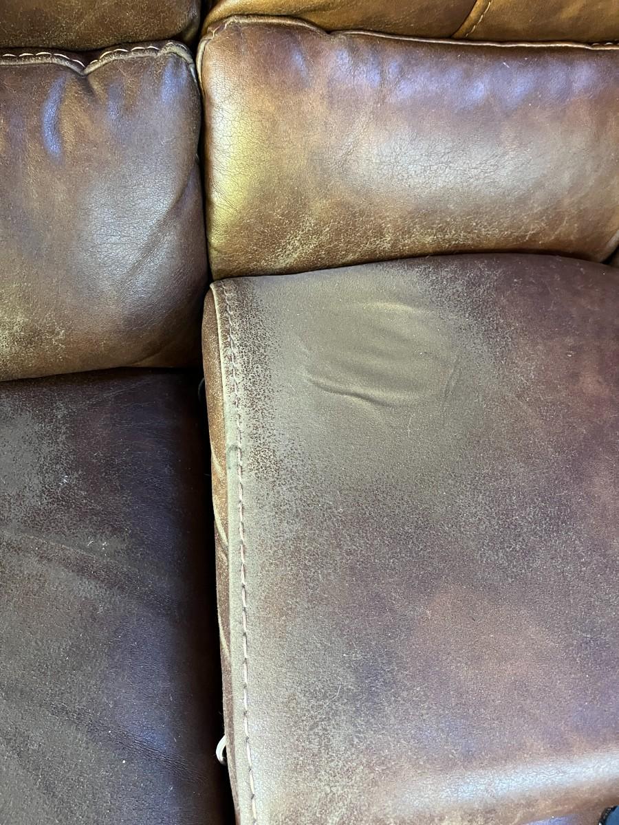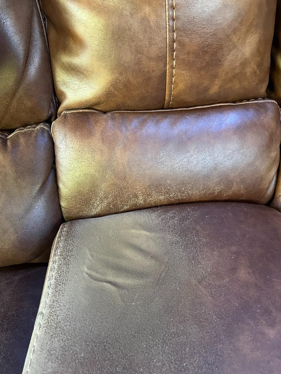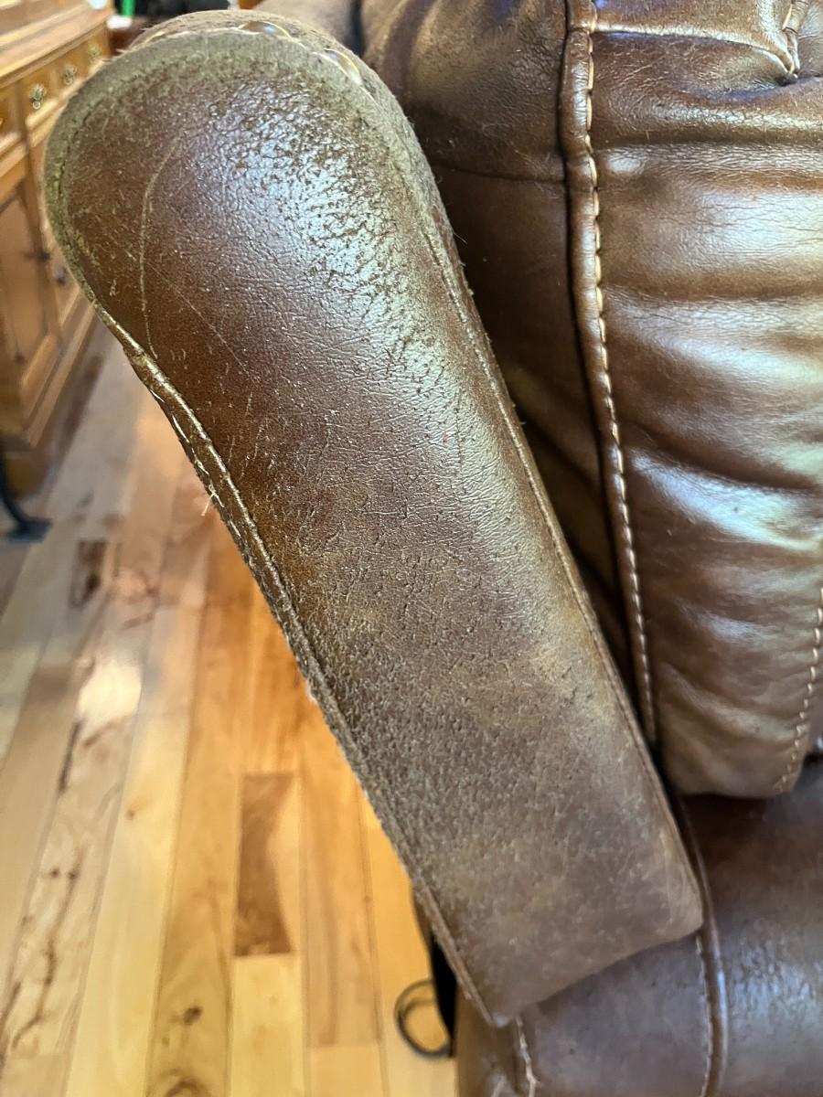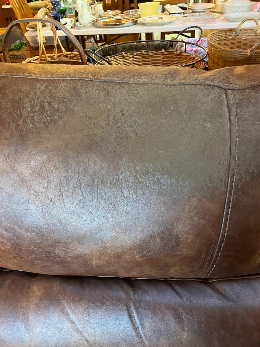 Sofa Has wear spots and cat claw damage. See Photos