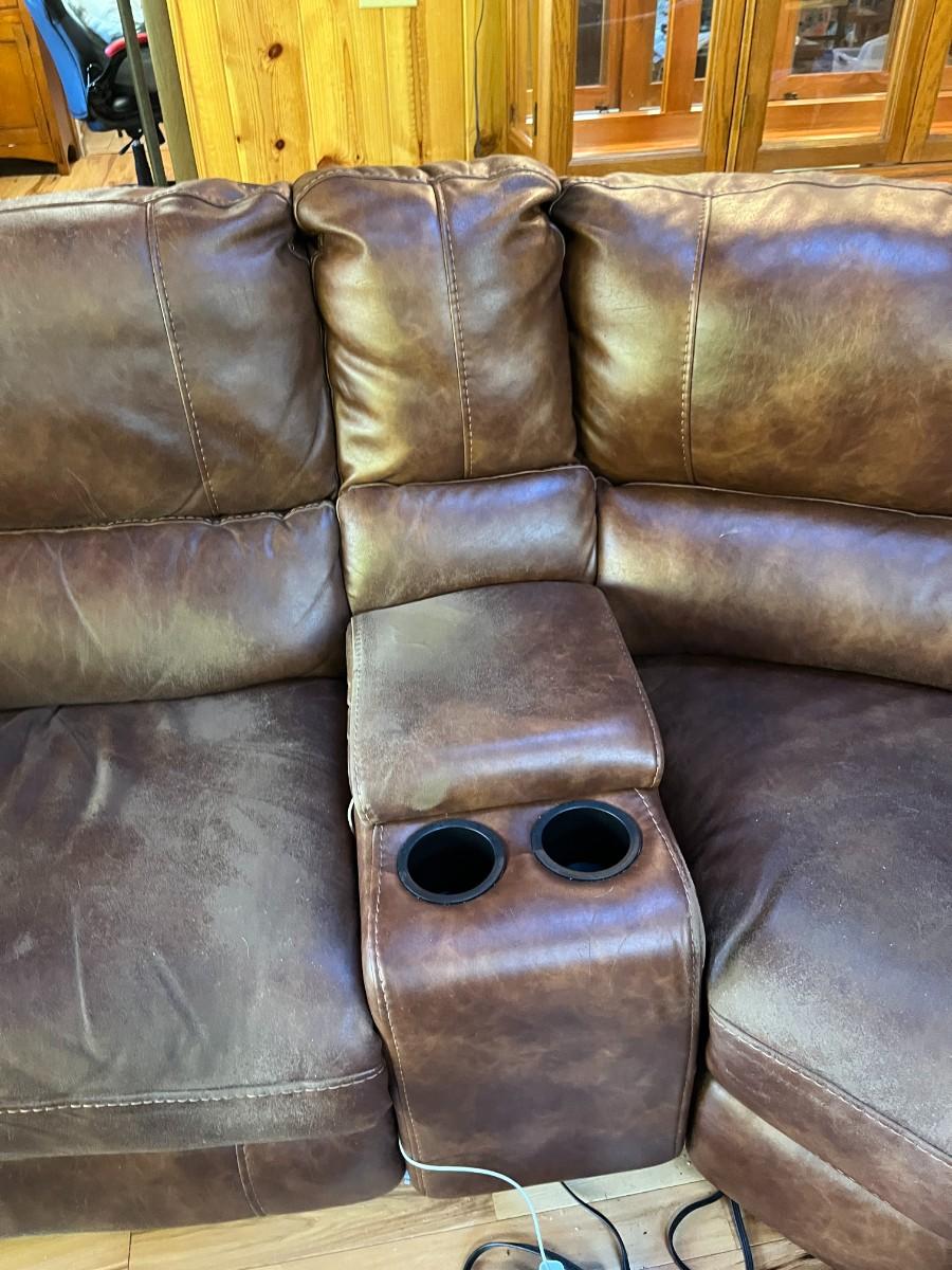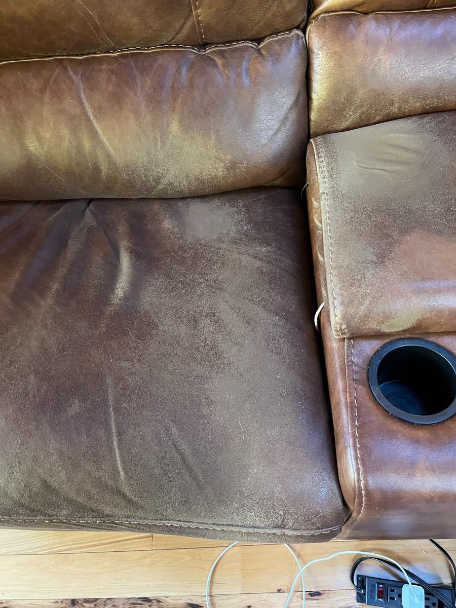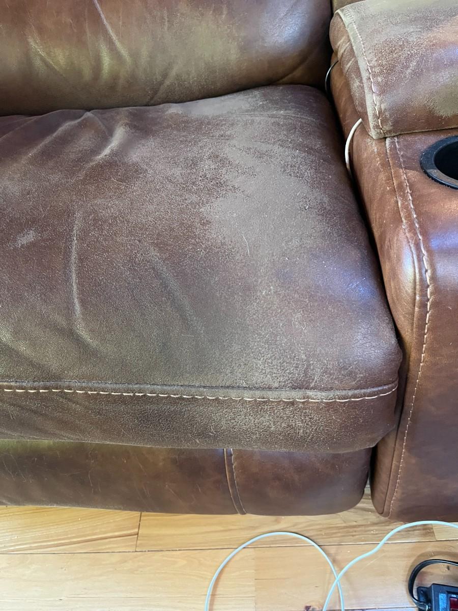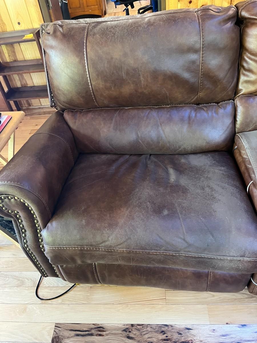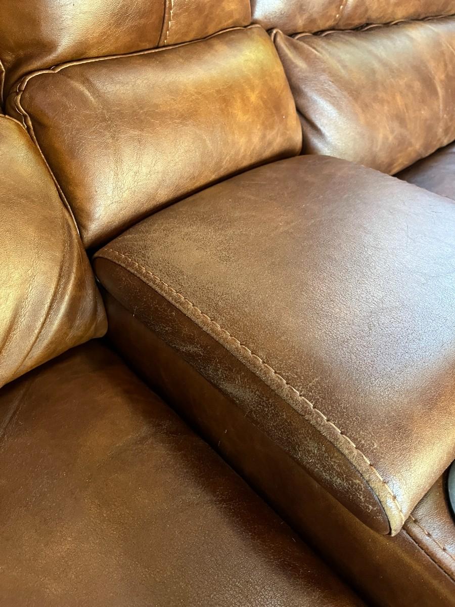 Sofa Has wear spots and cat claw damage. See Photos