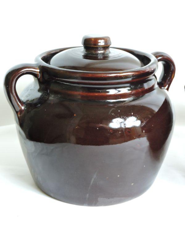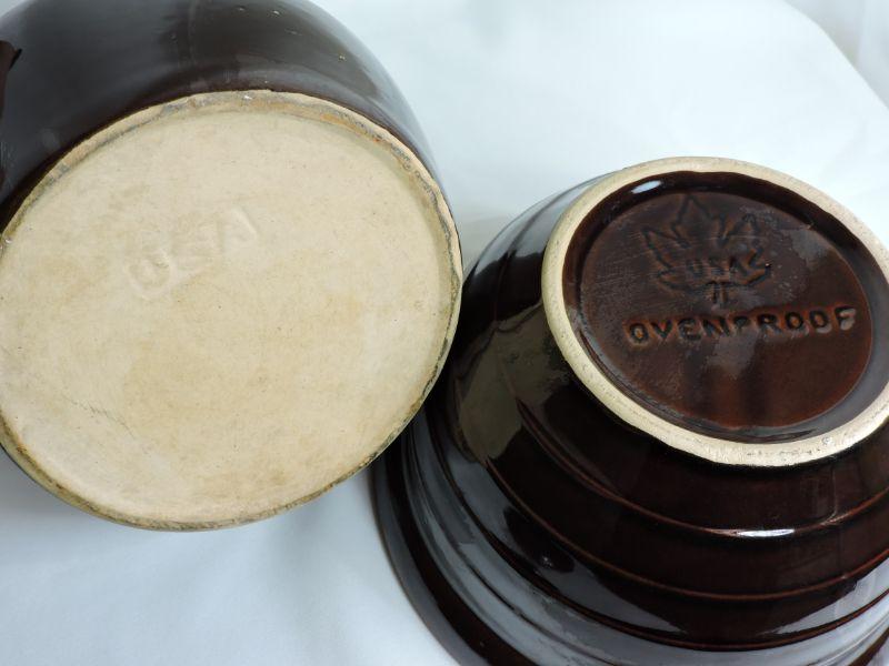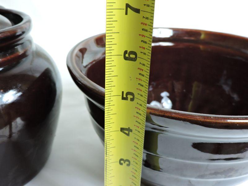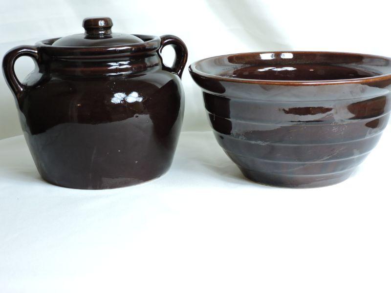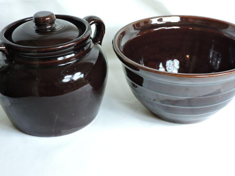 Brown Stoneware Crock and Mixing Bowl