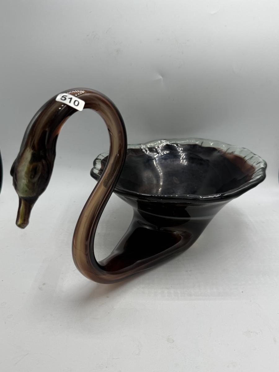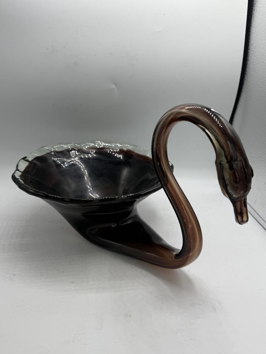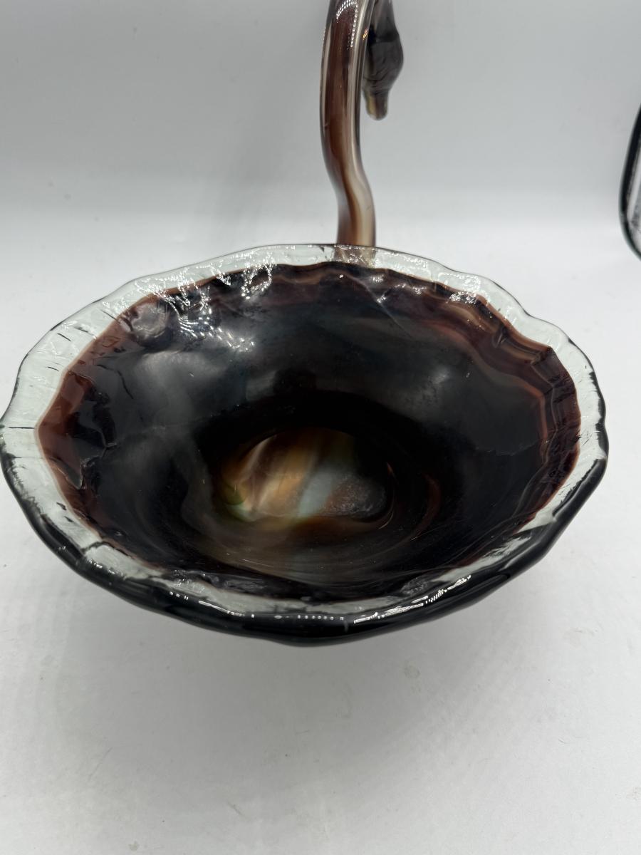 Brown swan art glass