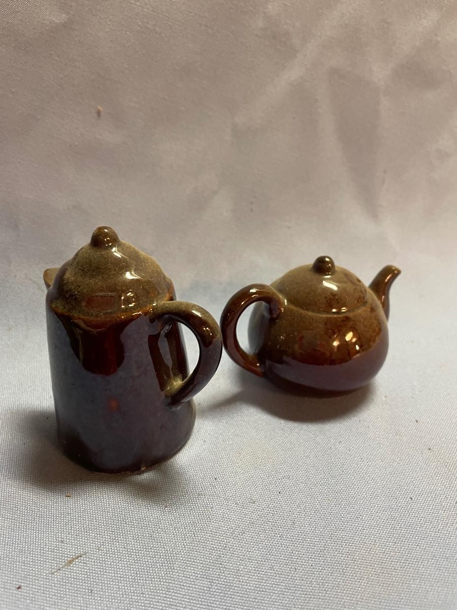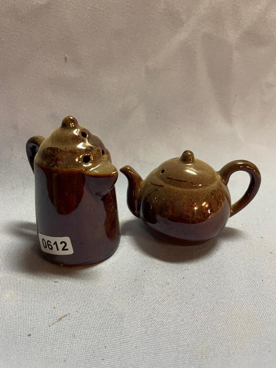 Brown teapot/coffee pot salt & pepper