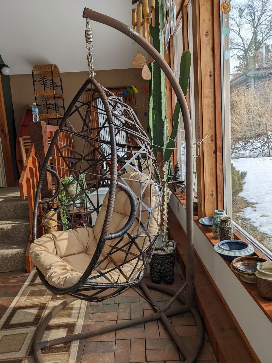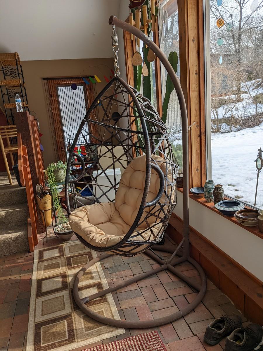 Brown Tear Drop Resin Wicker Basket Egg Chair Swing & Stand Outdoor Furniture