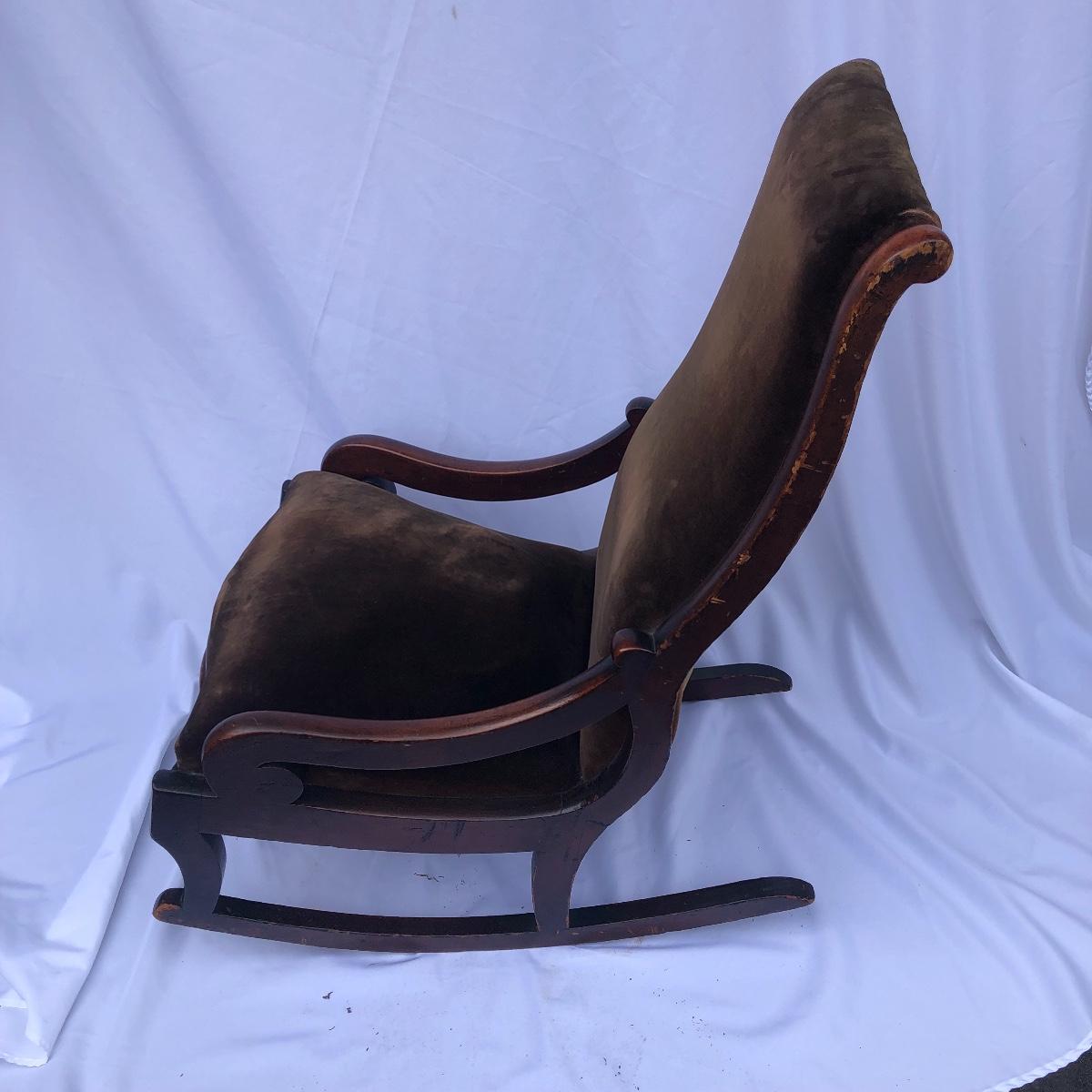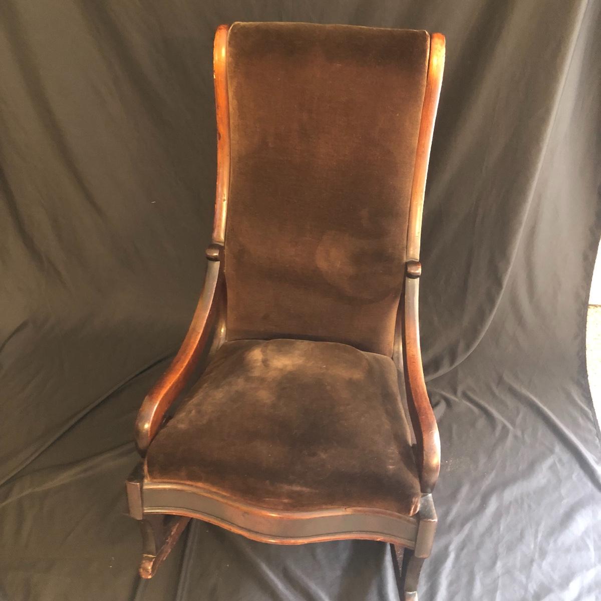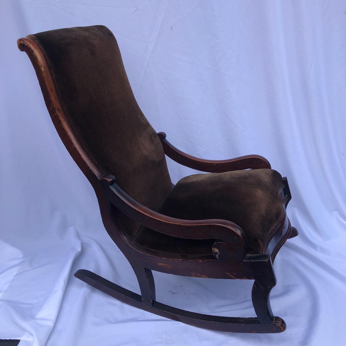 This rocker is 29” wide (rocker to rocker), 34” tall. The seat is approximately 17” x 20” and is about 16” high. Local pick up only.