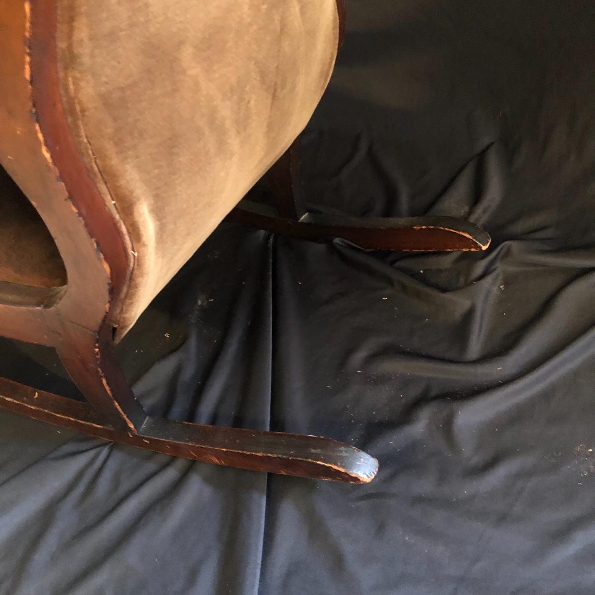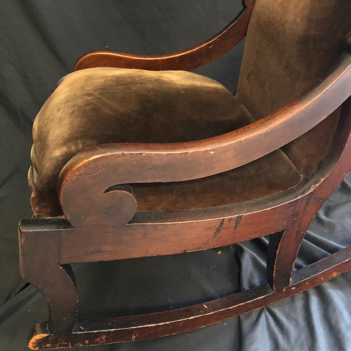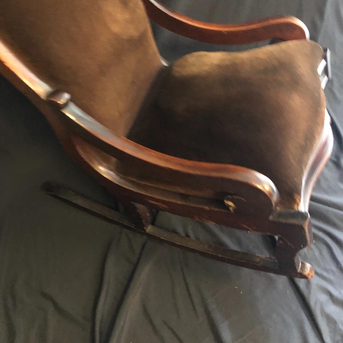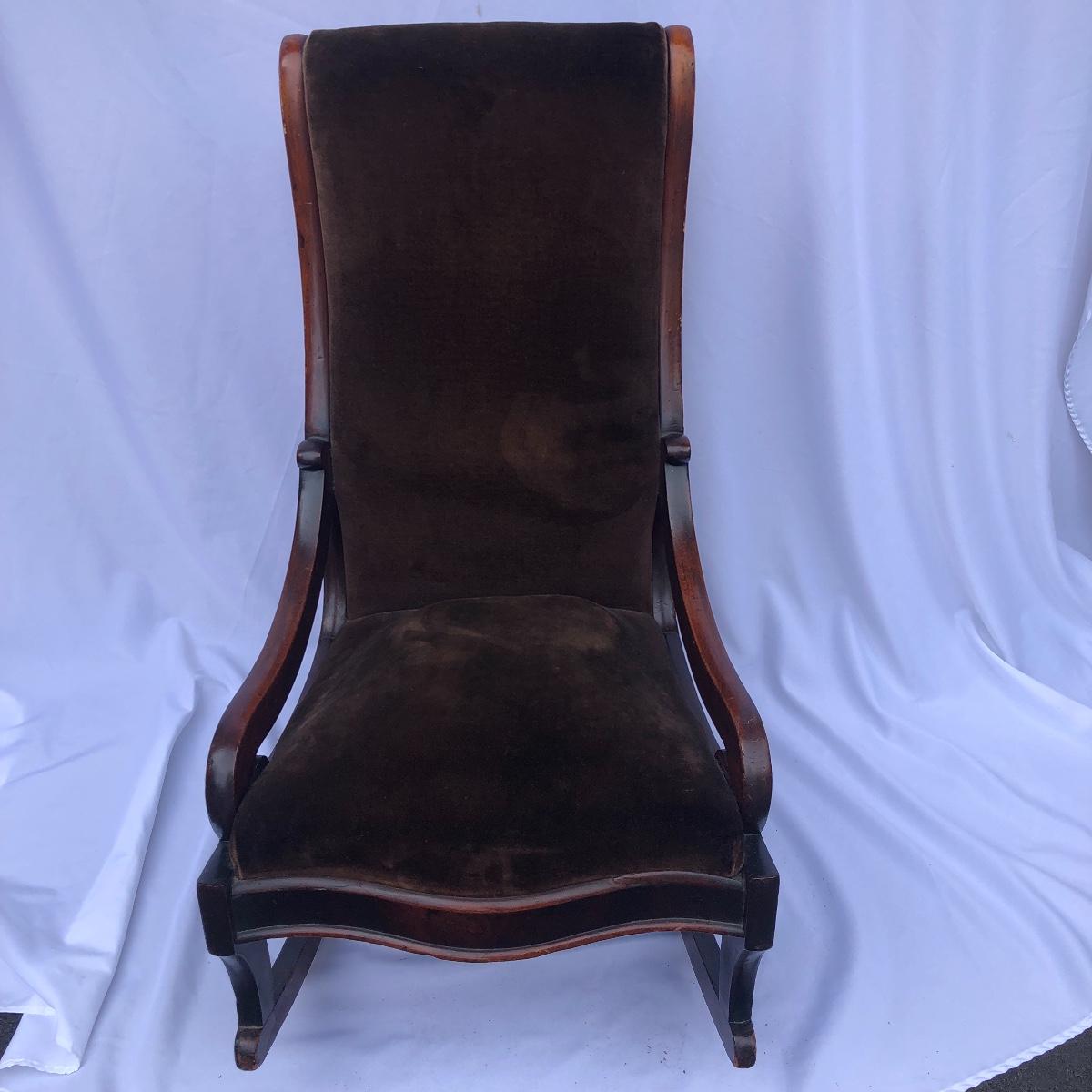 This rocker is 29” wide (rocker to rocker), 34” tall. The seat is approximately 17” x 20” and is about 16” high. Local pick up only.
