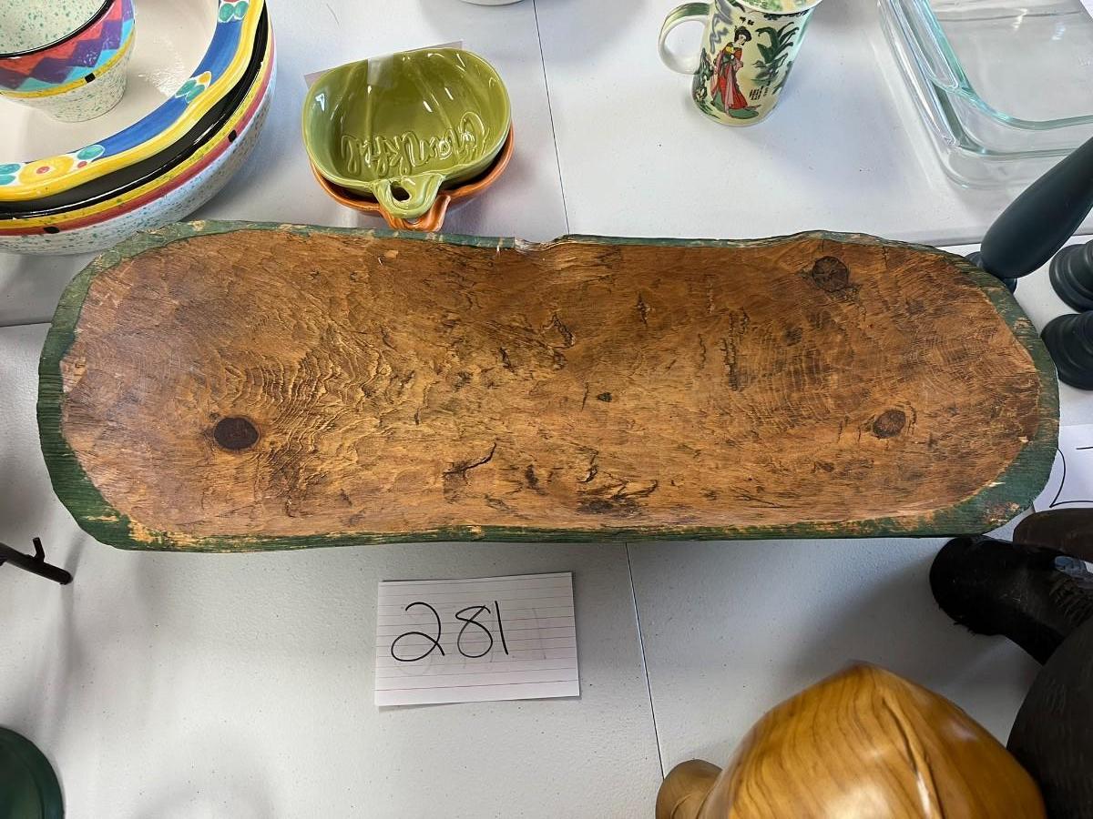 Brown W/Green Back, Wood Decorative Tray Made in Mexico