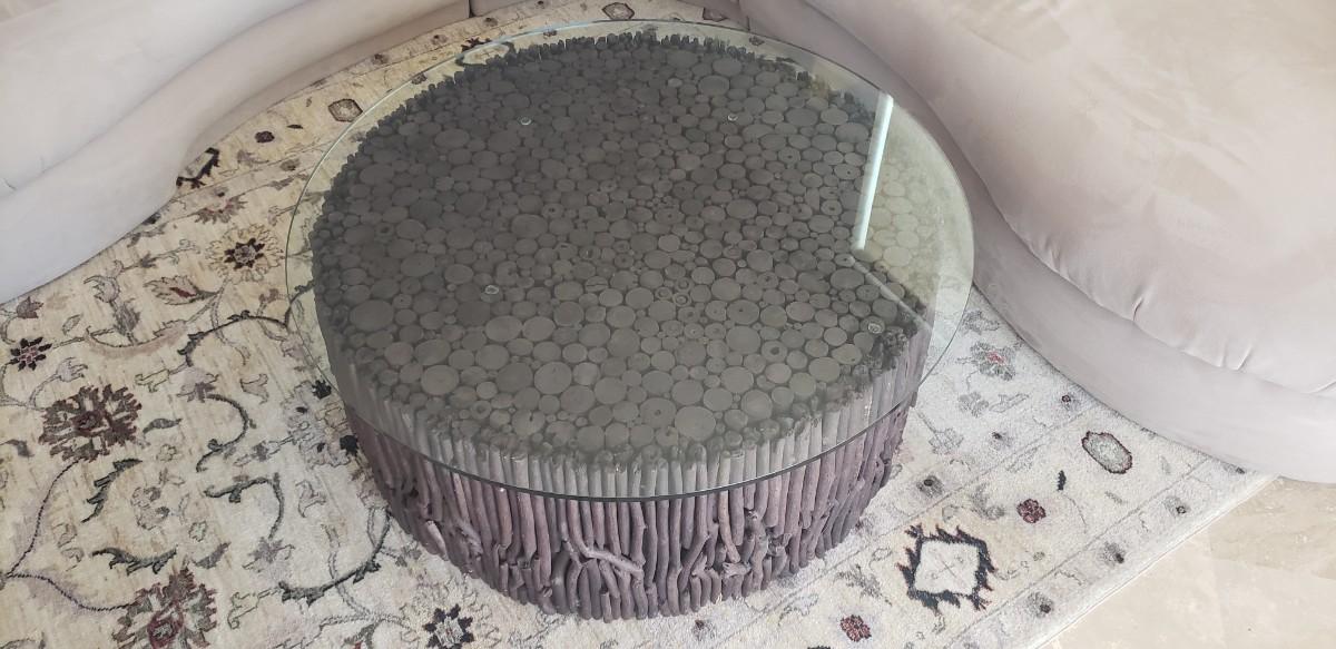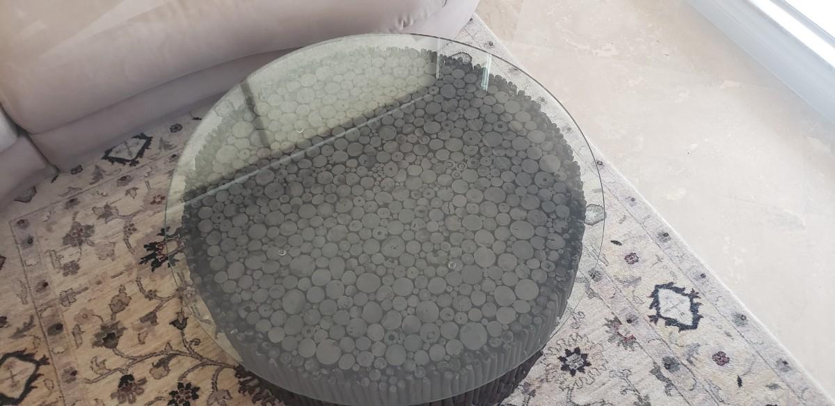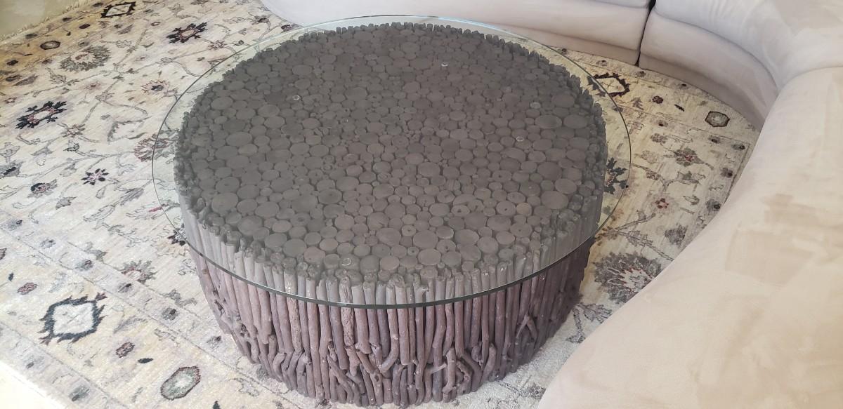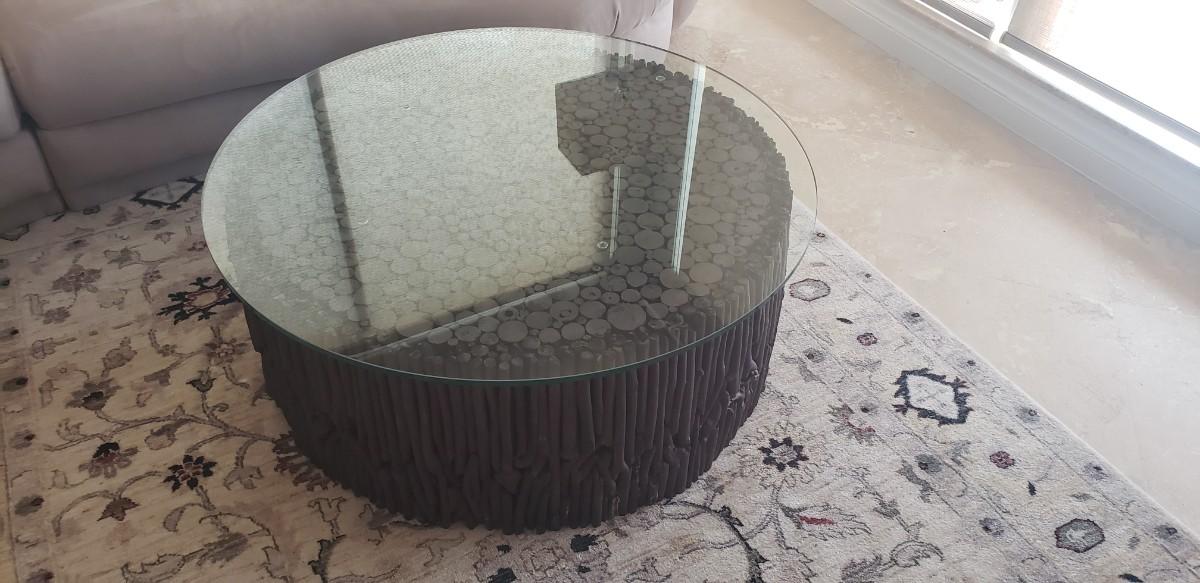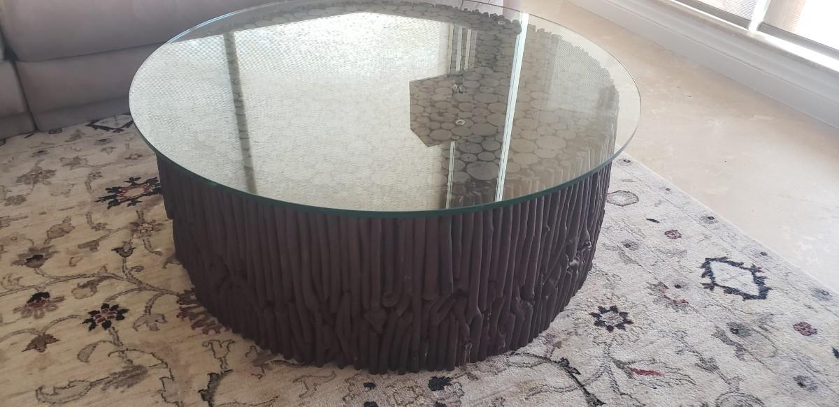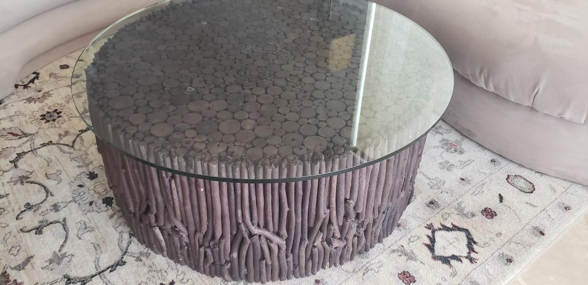 Coffee Table, Round Glass Top with Twig Wood Base, Made in South America