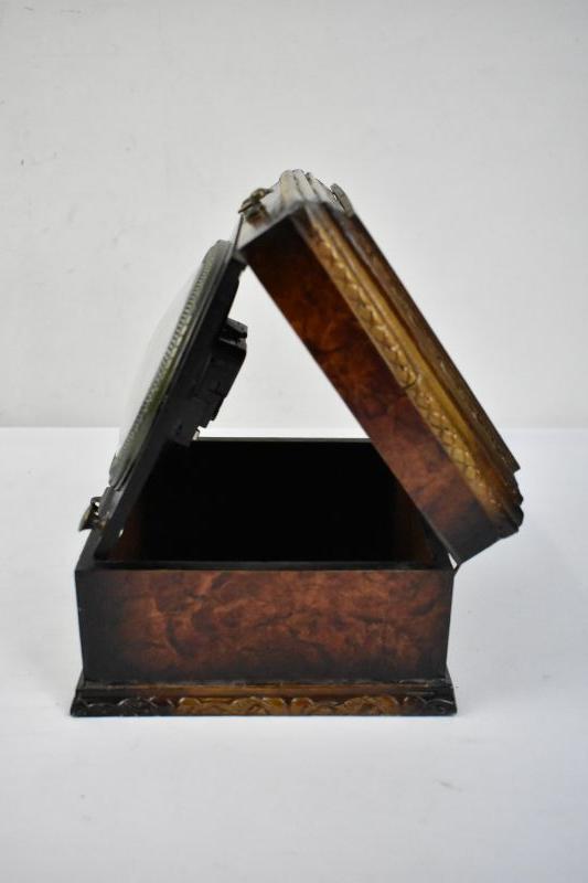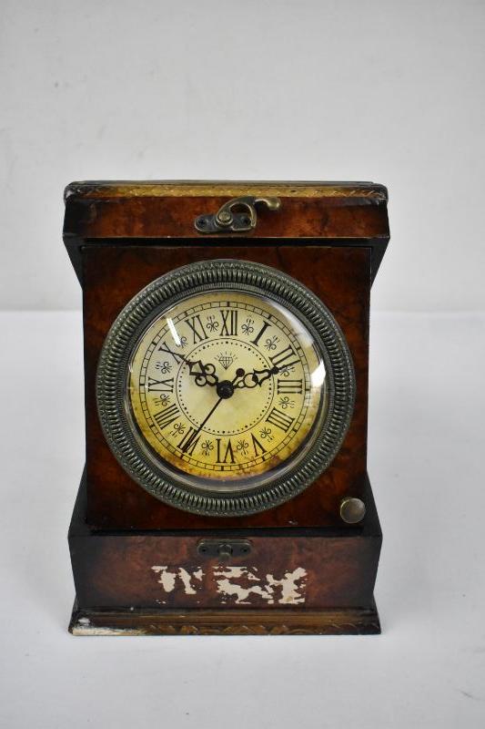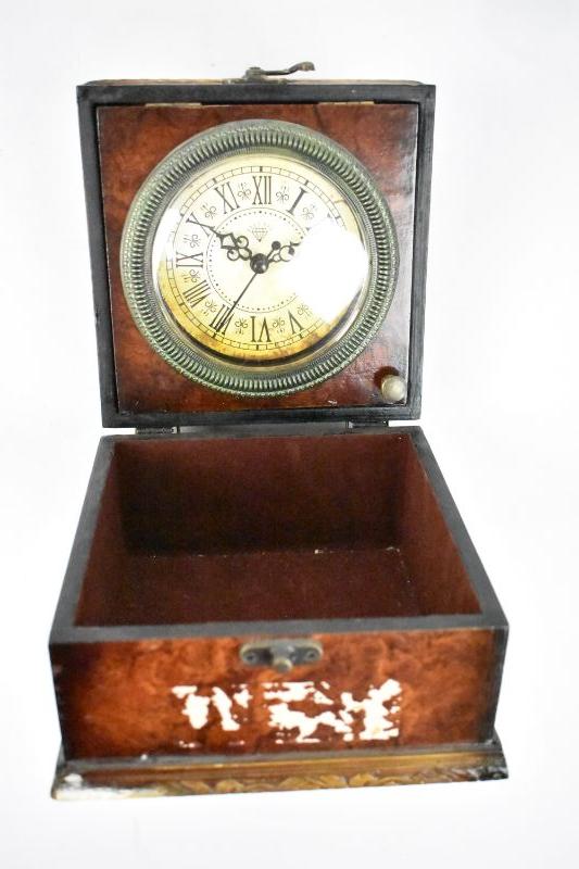 Brown Wooden Hinged Box with Hidden Clock, Tested, Works