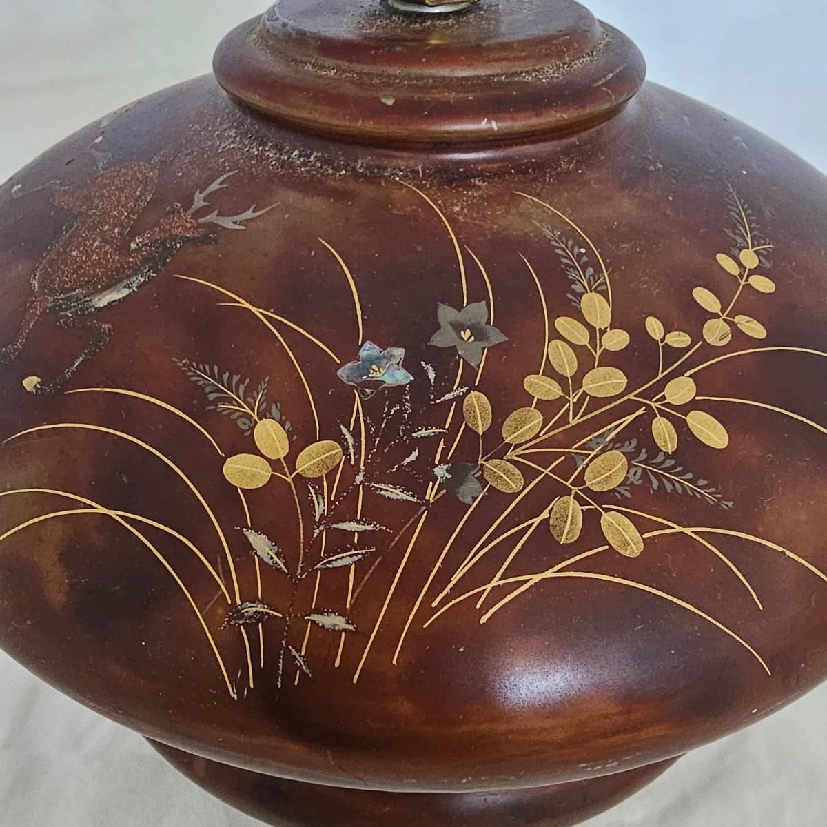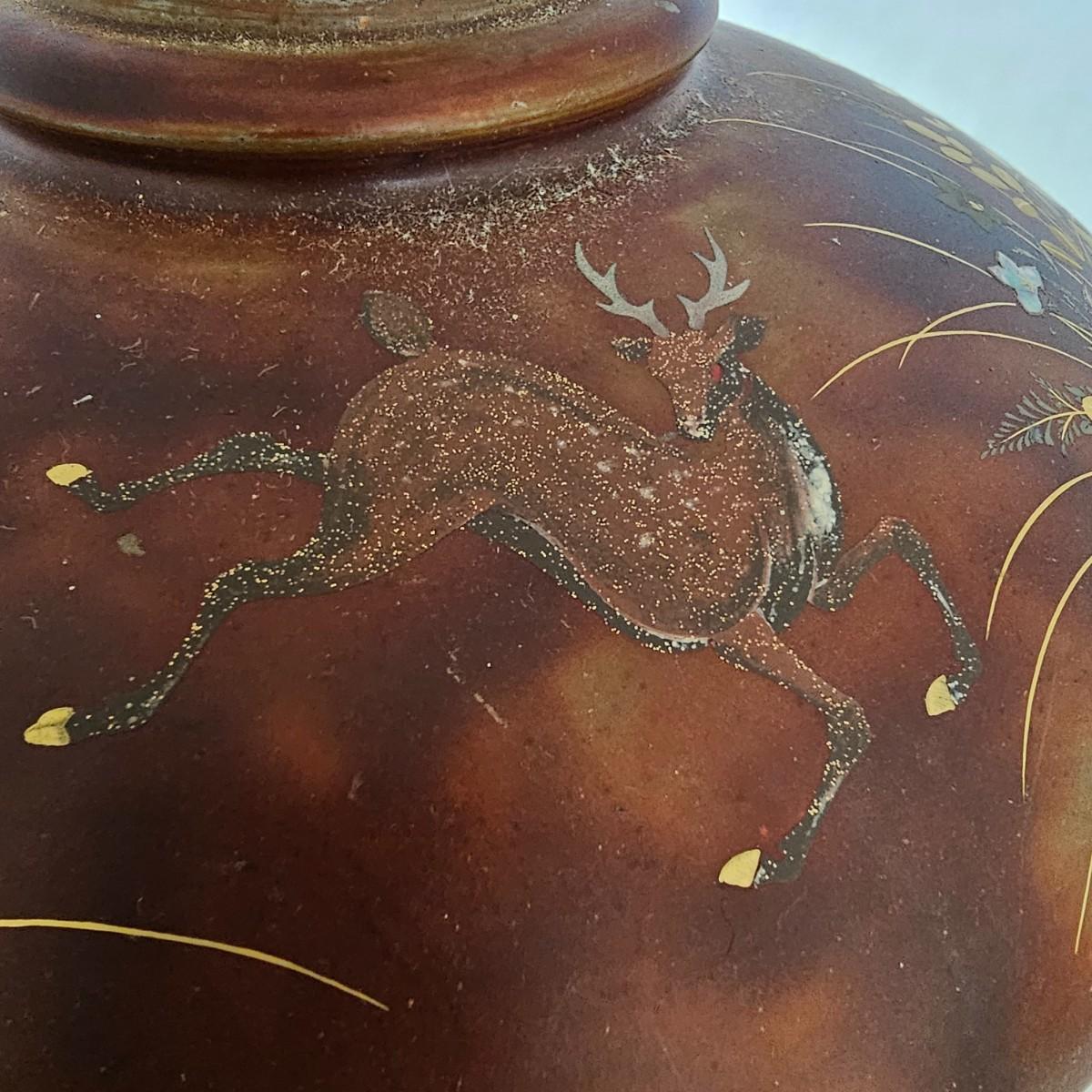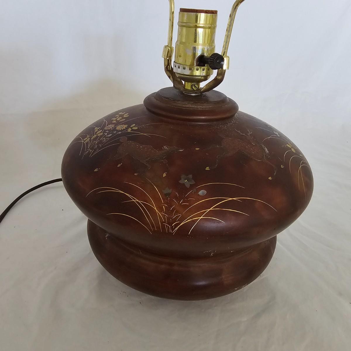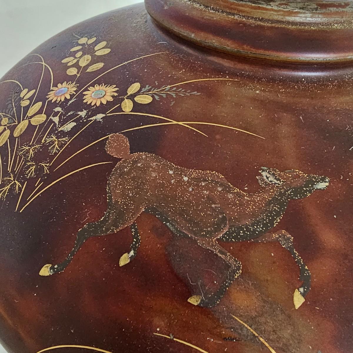 Double round base with woodland design on it. Flowers and a scampering pair of deer decorate the base. Ceramic lamp measures 9"D x 19"H. See photos for details. Shipping available.