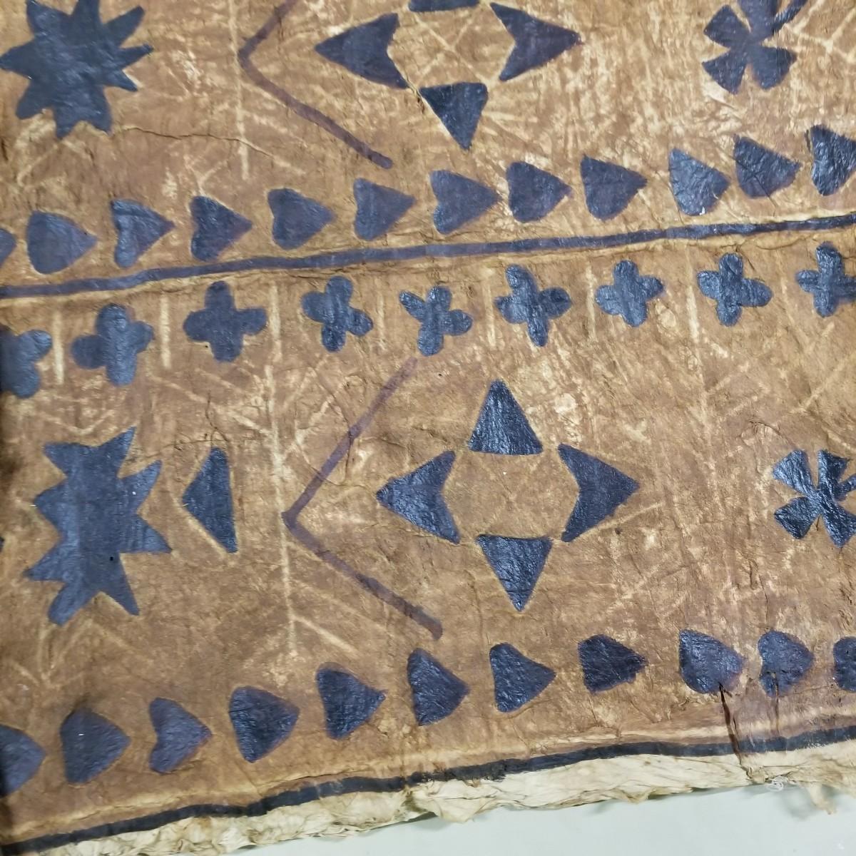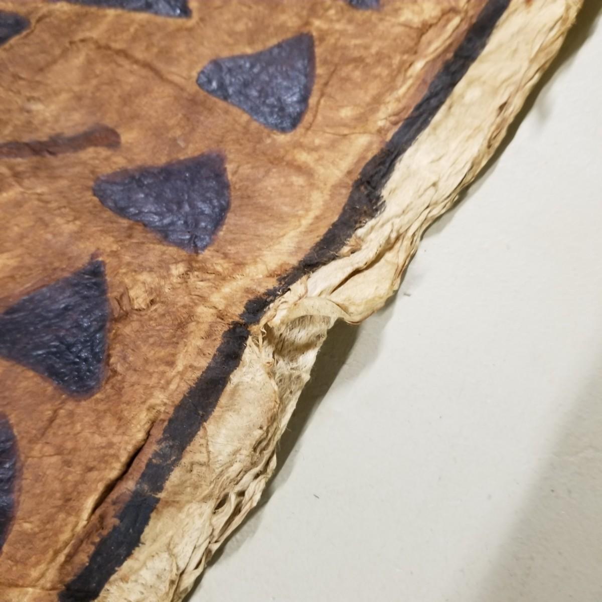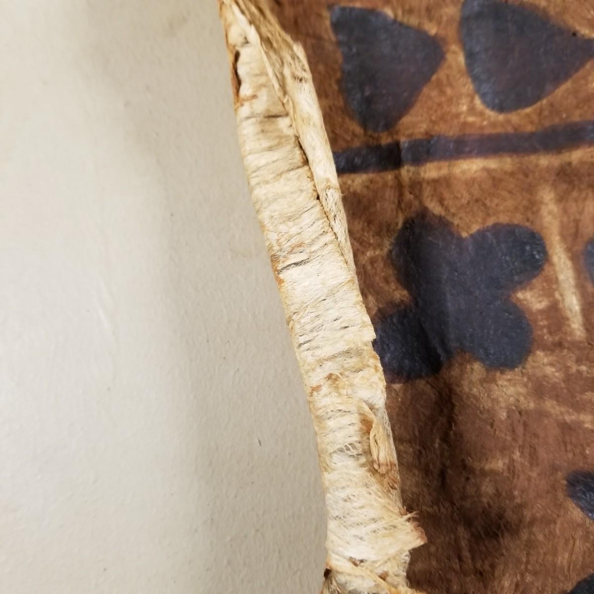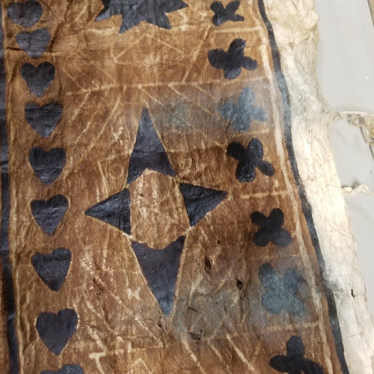 Patterned wall hanging in brown and black.  Hearts, clovers,.diamonds in the pattern. Item appears to be made out of paper. Edges are rough and some discoloring in places, see photos.  60" x54".  Shipping available. Shipping Art can be costly please call UPS store at 828-252-6930 for quote.