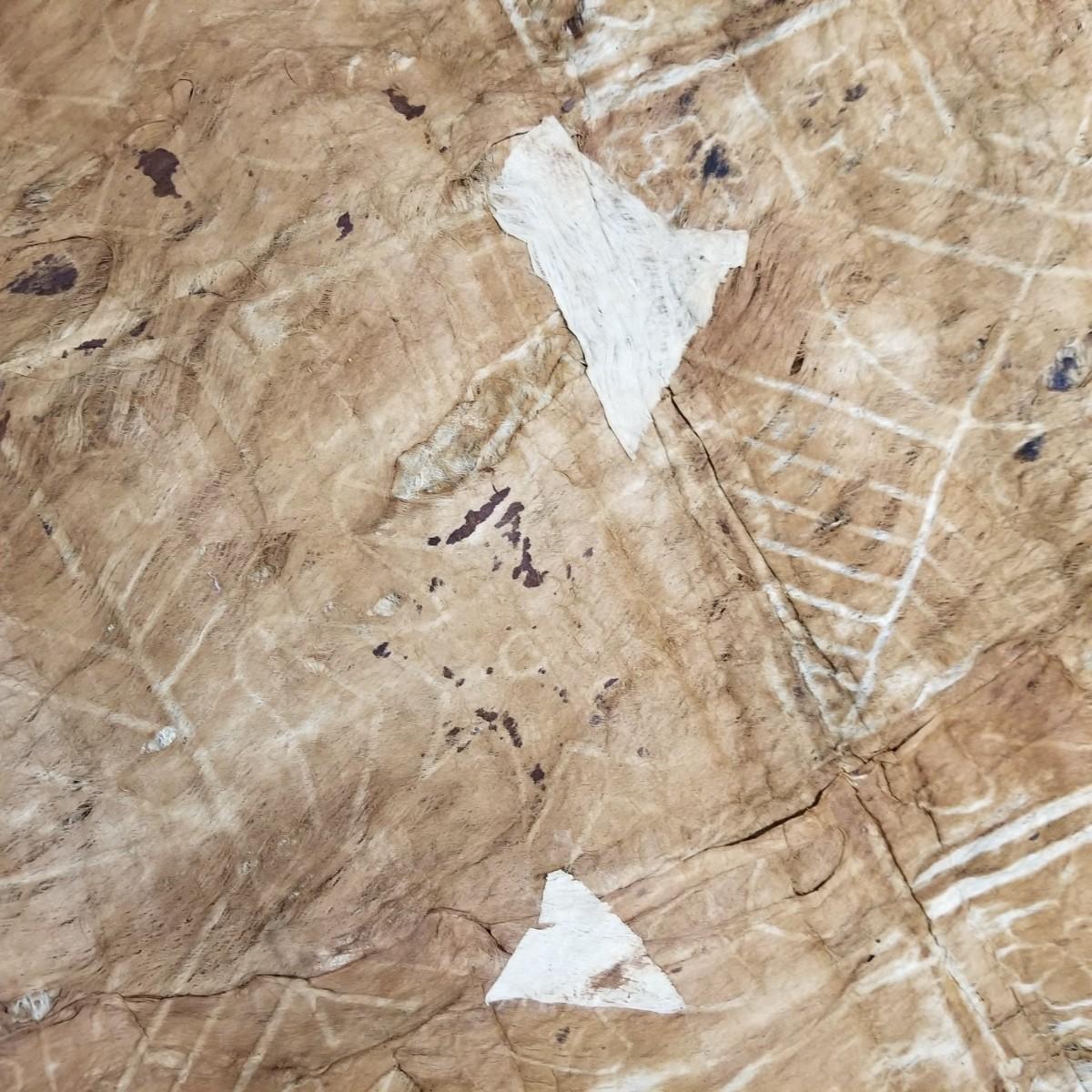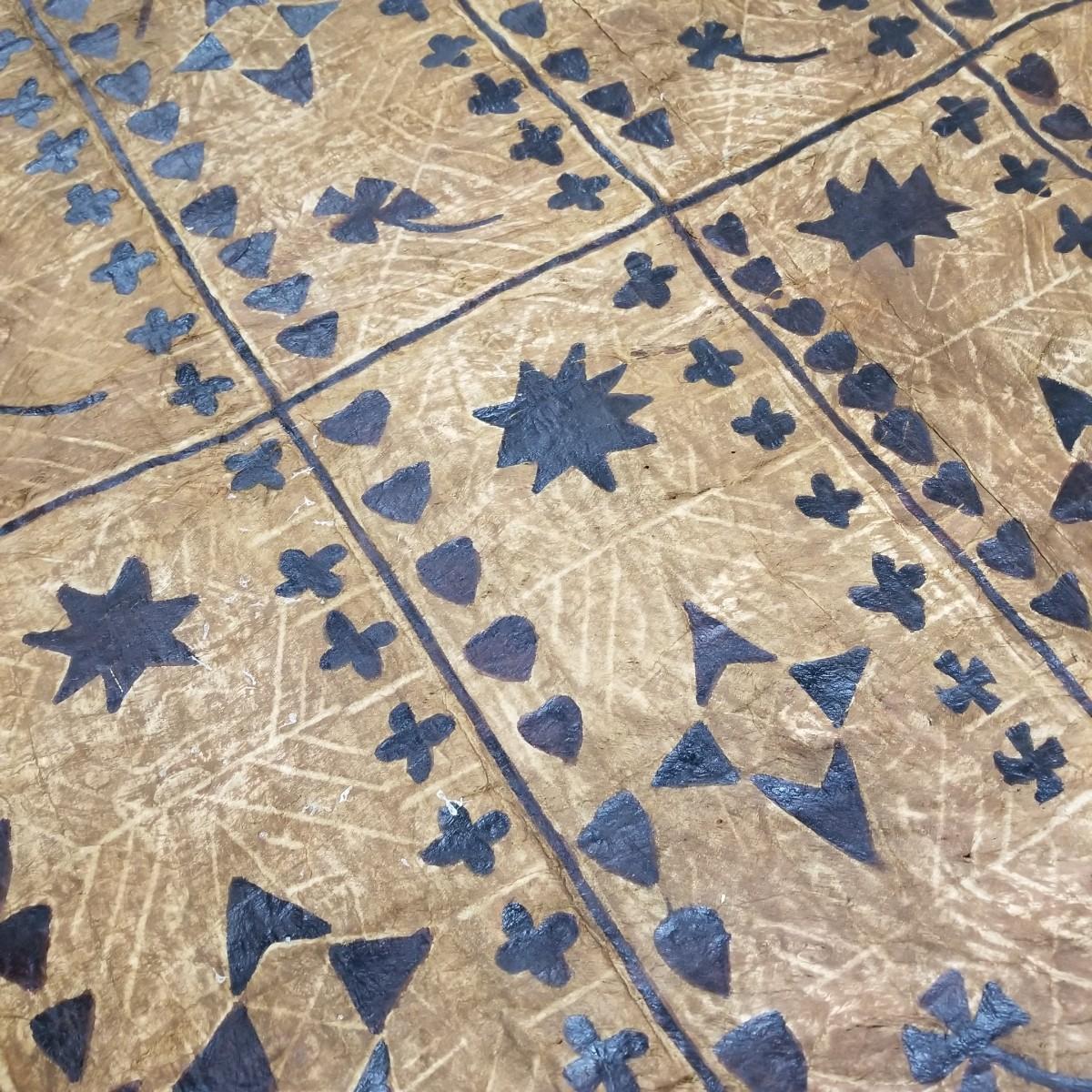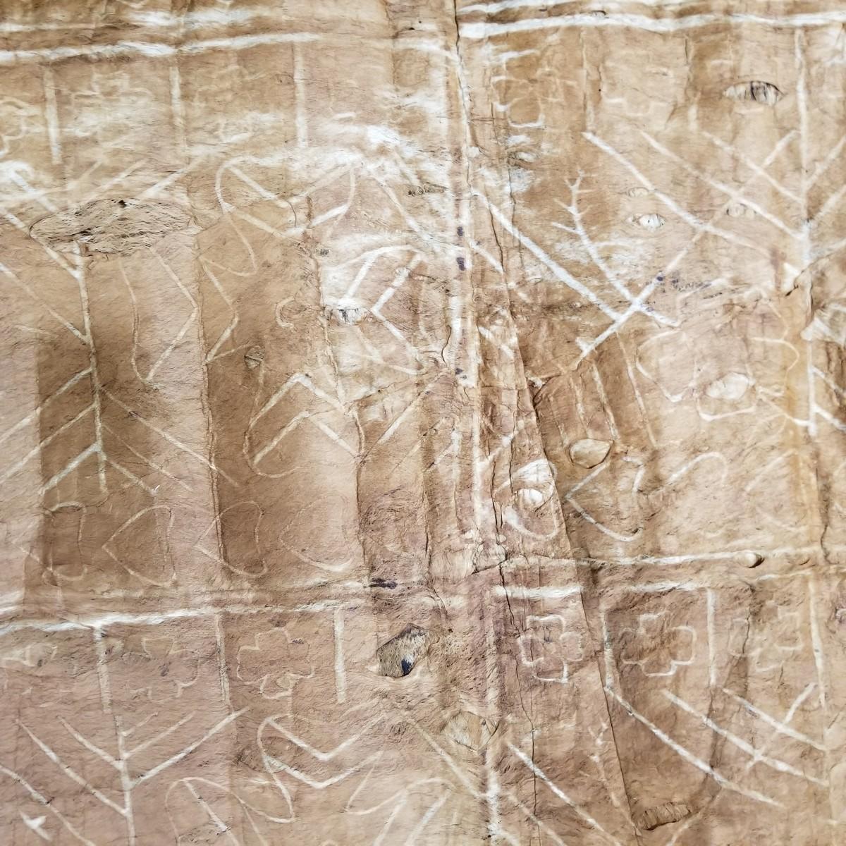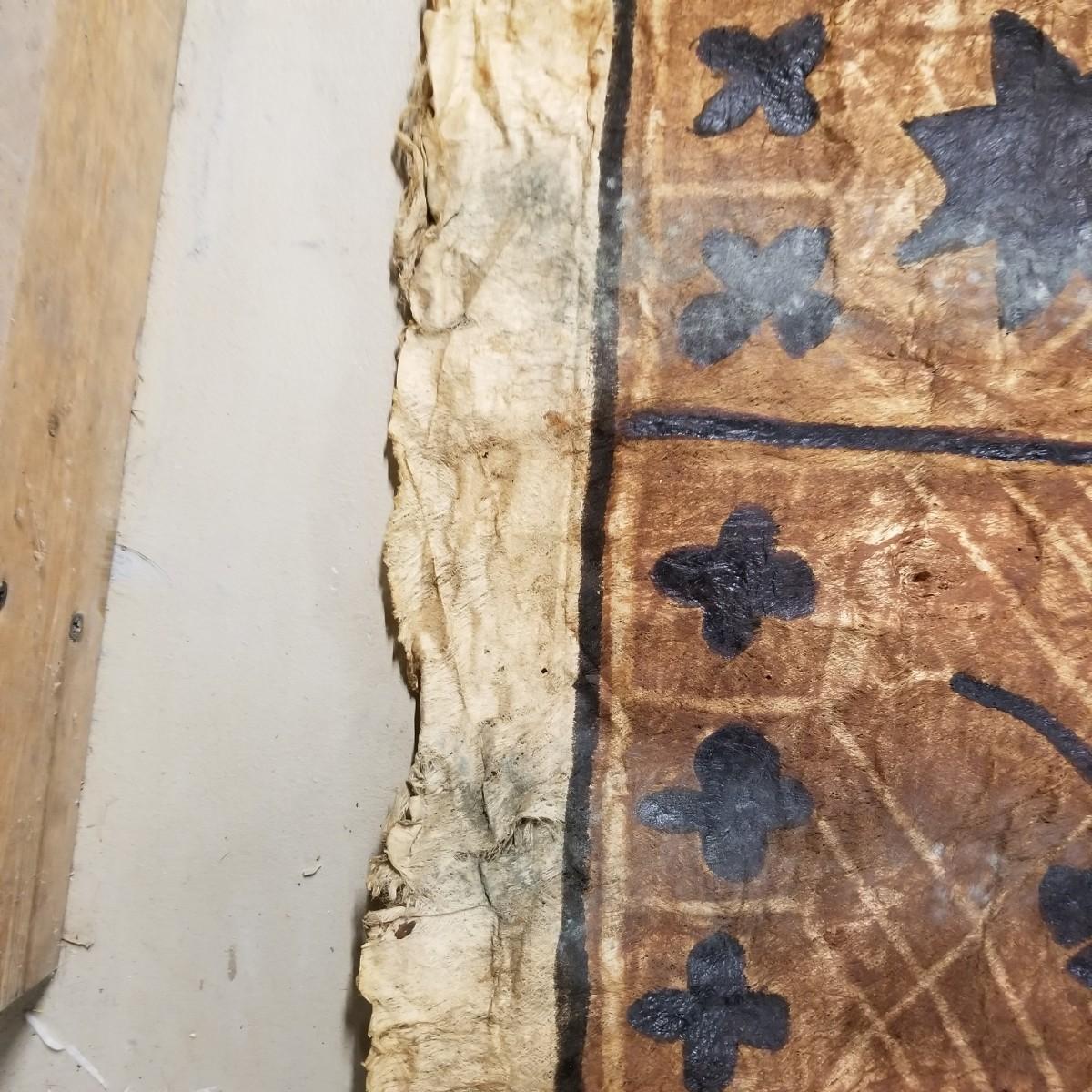 Patterned wall hanging in brown and black.  Hearts, clovers,.diamonds in the pattern. Item appears to be made out of paper. Edges are rough and some discoloring in places, see photos.  60" x54".  Shipping available. Shipping Art can be costly please call UPS store at 828-252-6930 for quote.