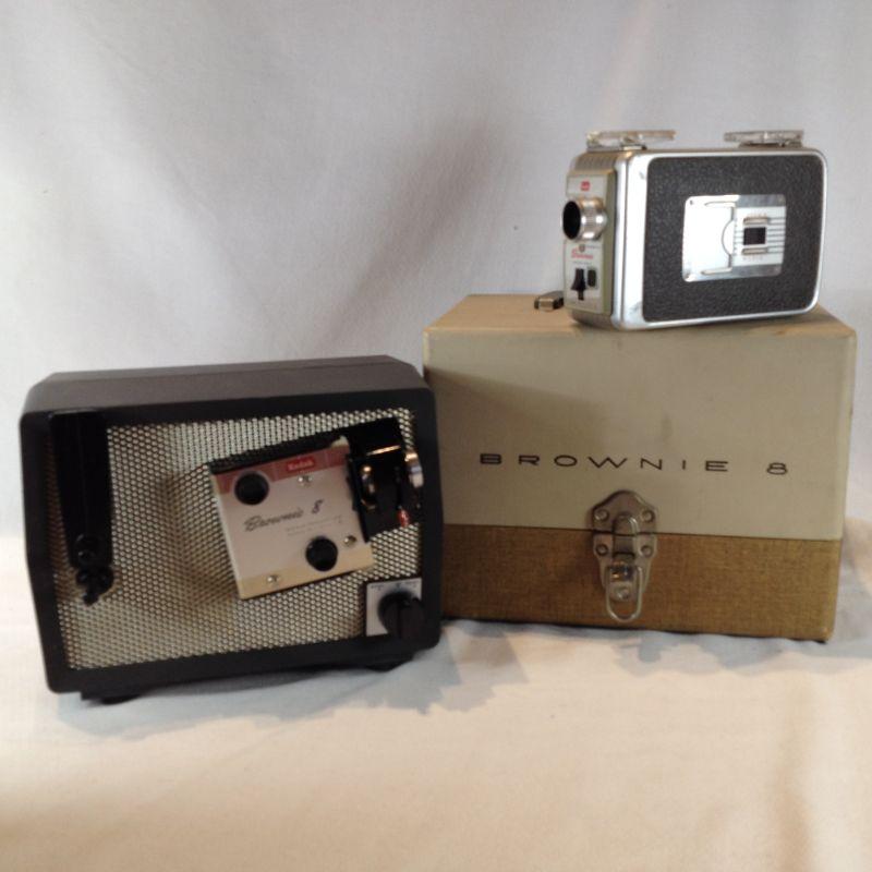 This is a neat find. The movie projector looks almost new It is model 10 . f/1.6 and has it's original case. The movie camera is a Brownie 8 Movie Camera II - 13mm f/2.3 Lens. Such a nice vintage camera set for a collector. Note: This is heavy - shipping will be very expensive.