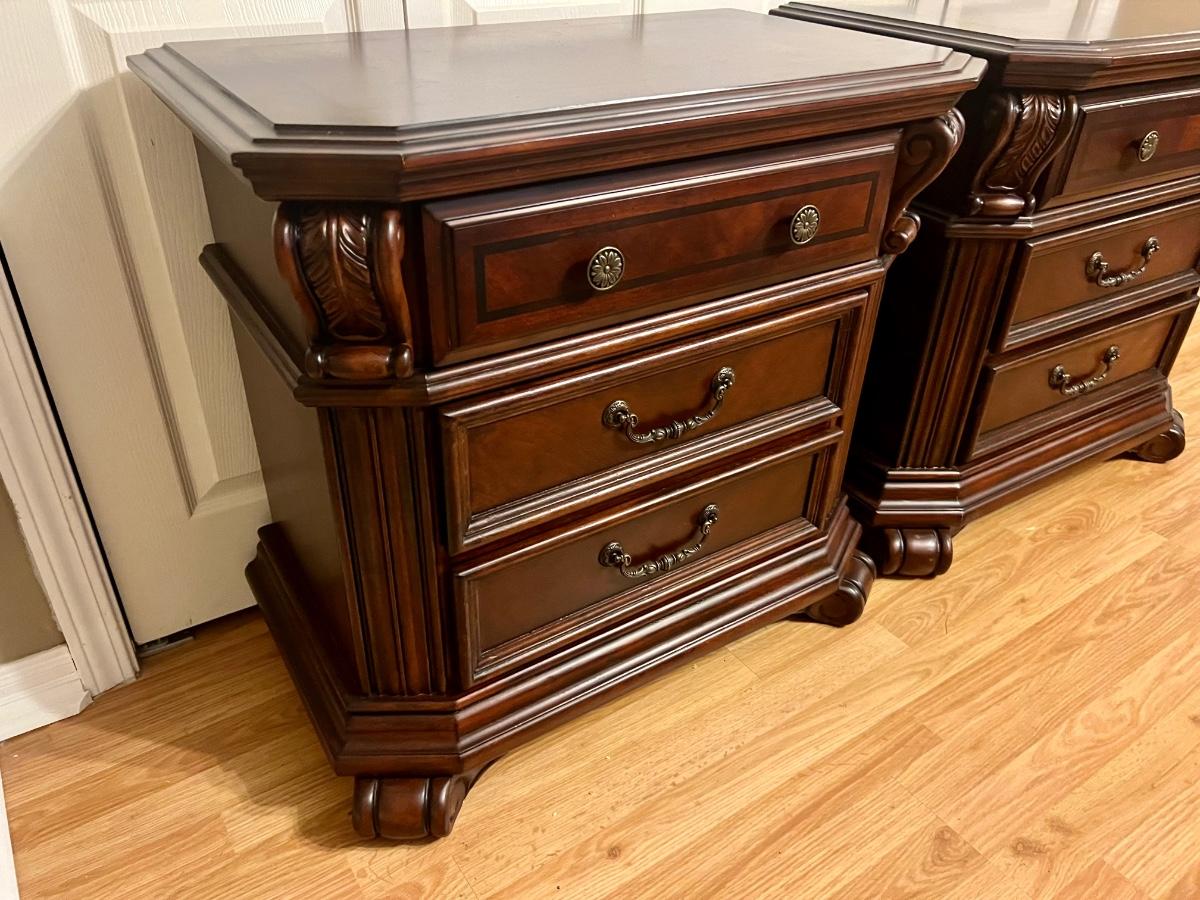BROYHILL 3 Drawer Night Stands Measure 30 inches tall, 31 inches wide and 17 1/2 inches deep.