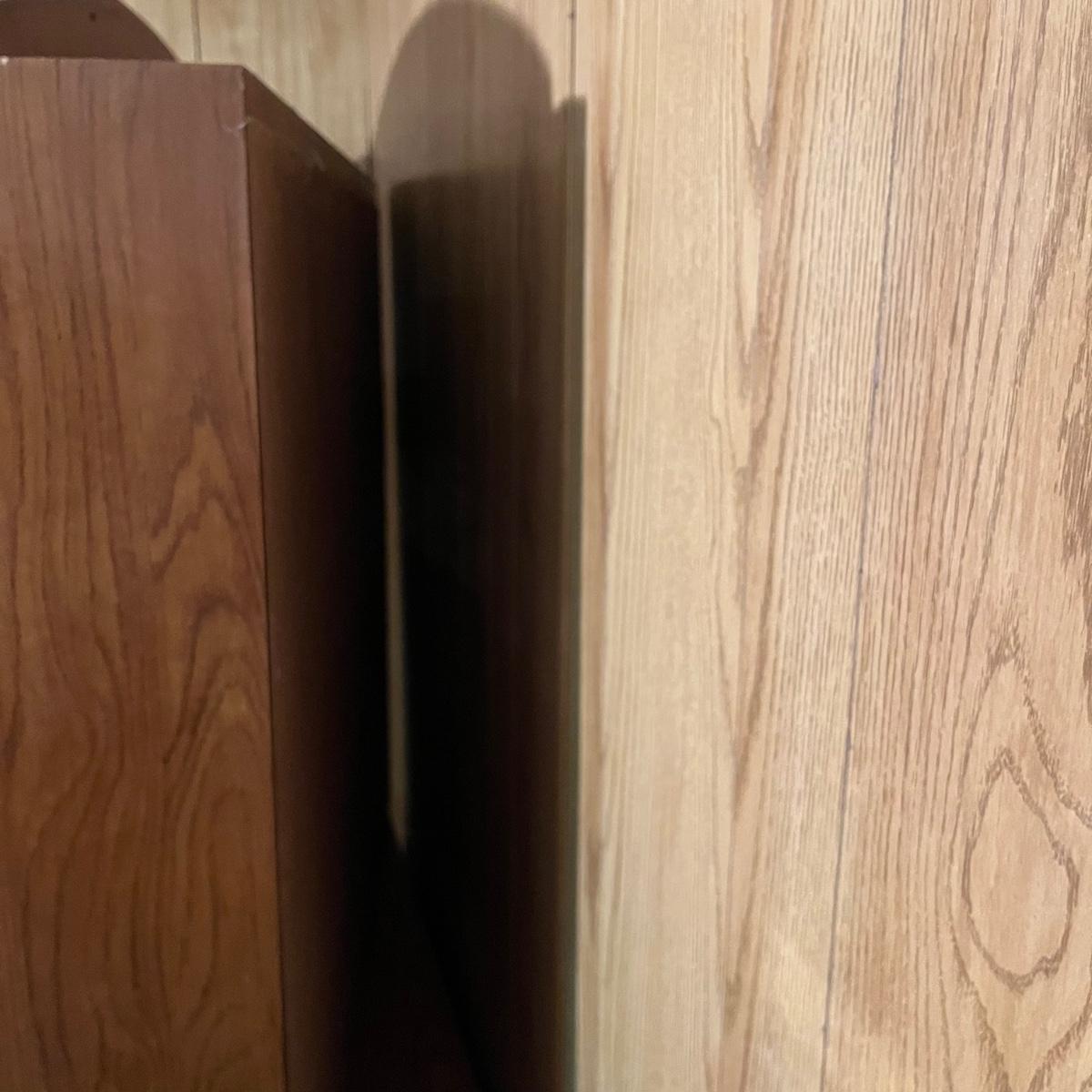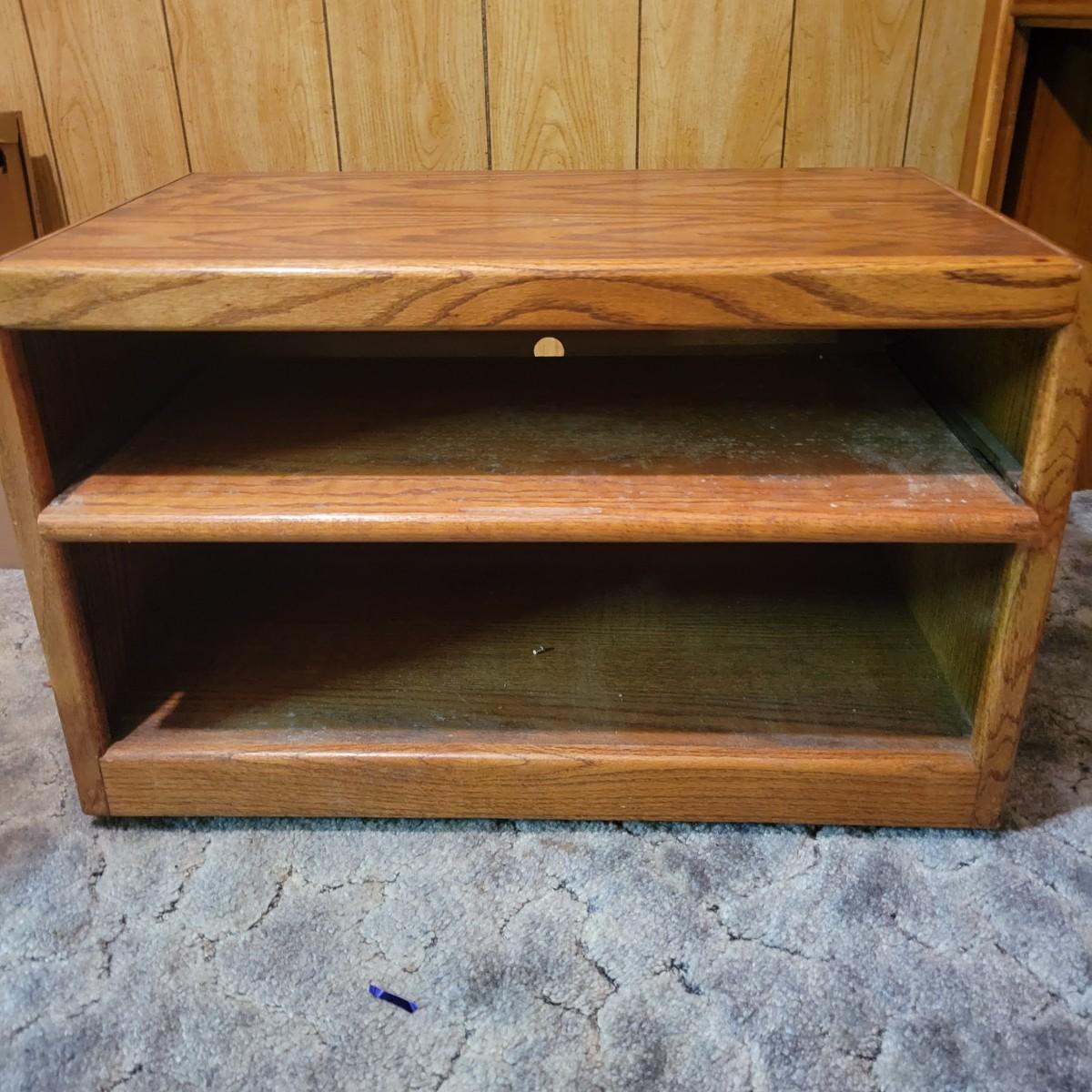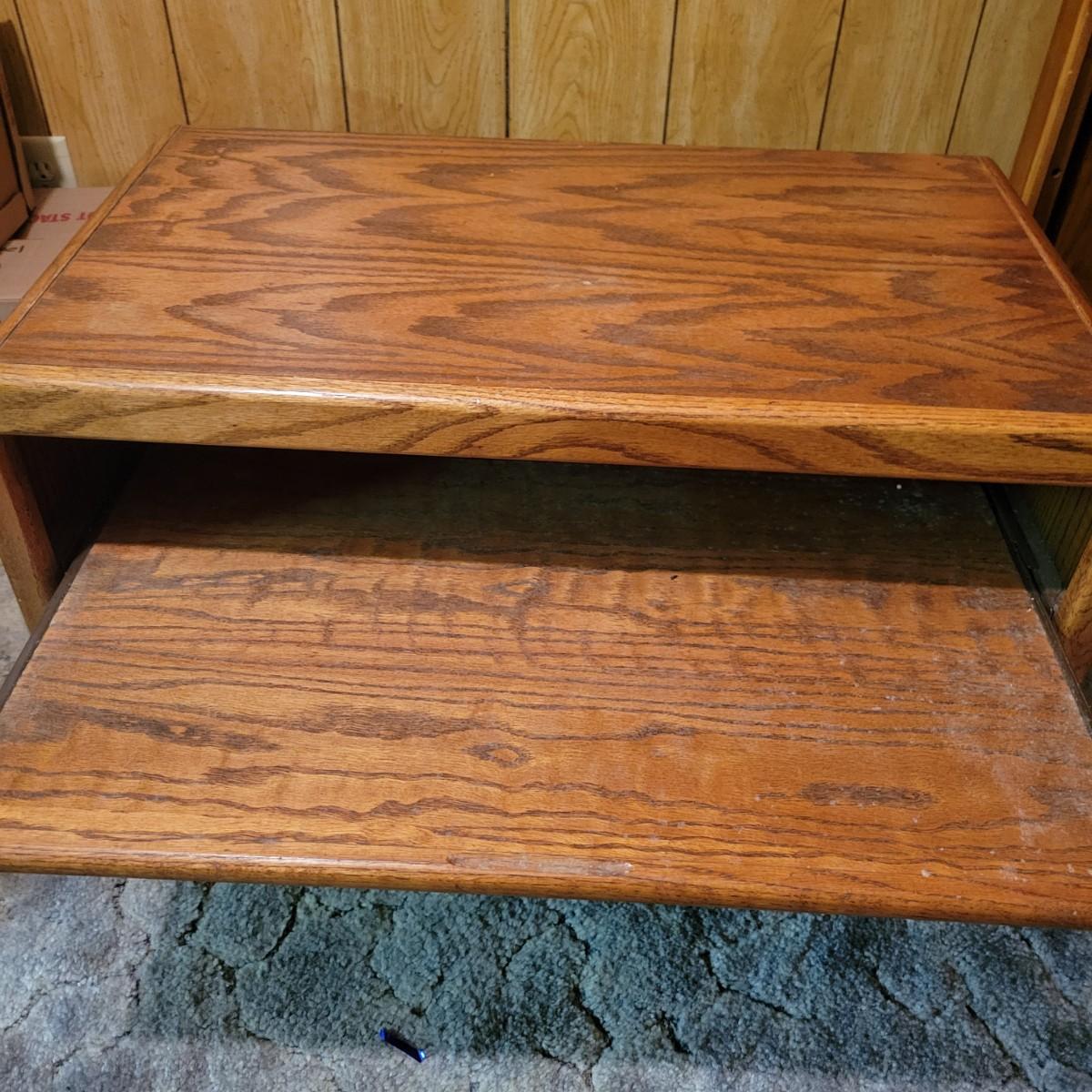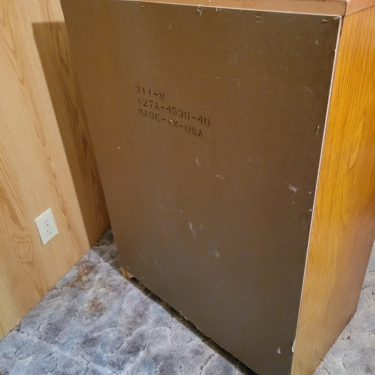 An assortment of three oak pieces of furniture manufactured by Broyhill in good condition with no notable damage. Included is a 4 drawer dresser with gold metal handles, a desk with a detachable bookshelf with 2 shelves and a rolling printer table with an extendable shelf to easily access printer. Desk and bookshelf measures approximately 40" x 18" x 76" Local pickup only. Winning bidder will need to move these items approximately 60ft and down a small set of stairs. It is recommended that you bring assistance.