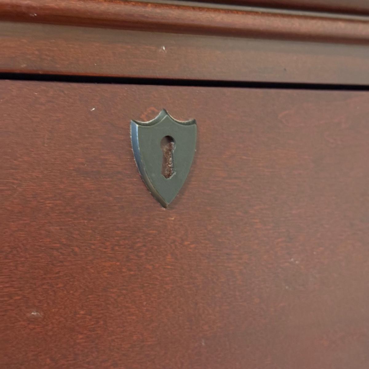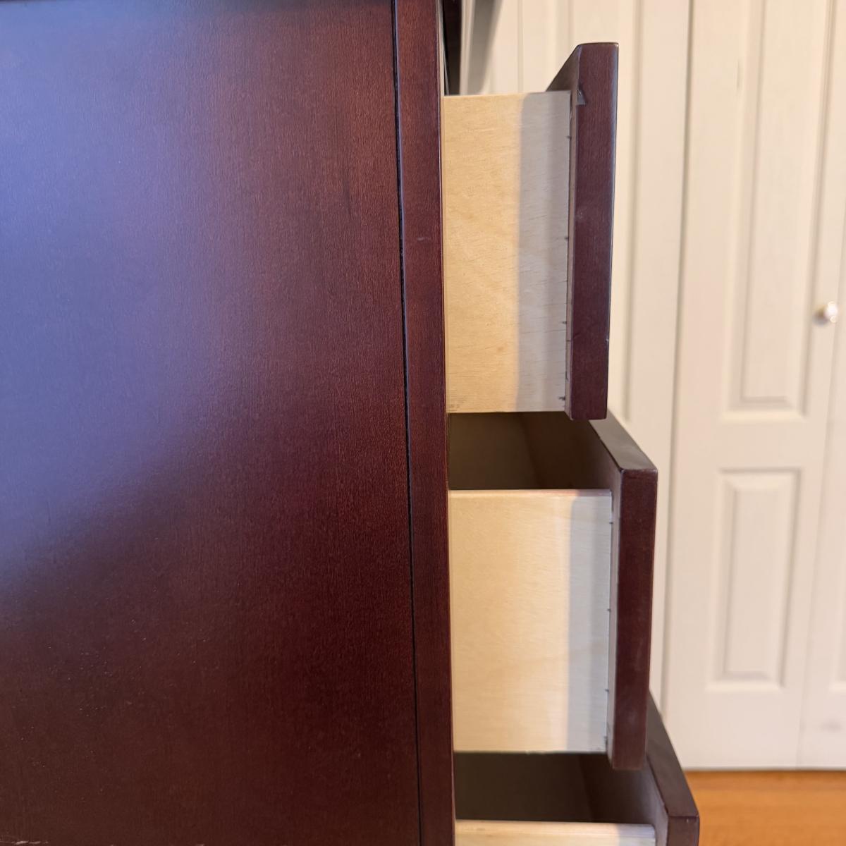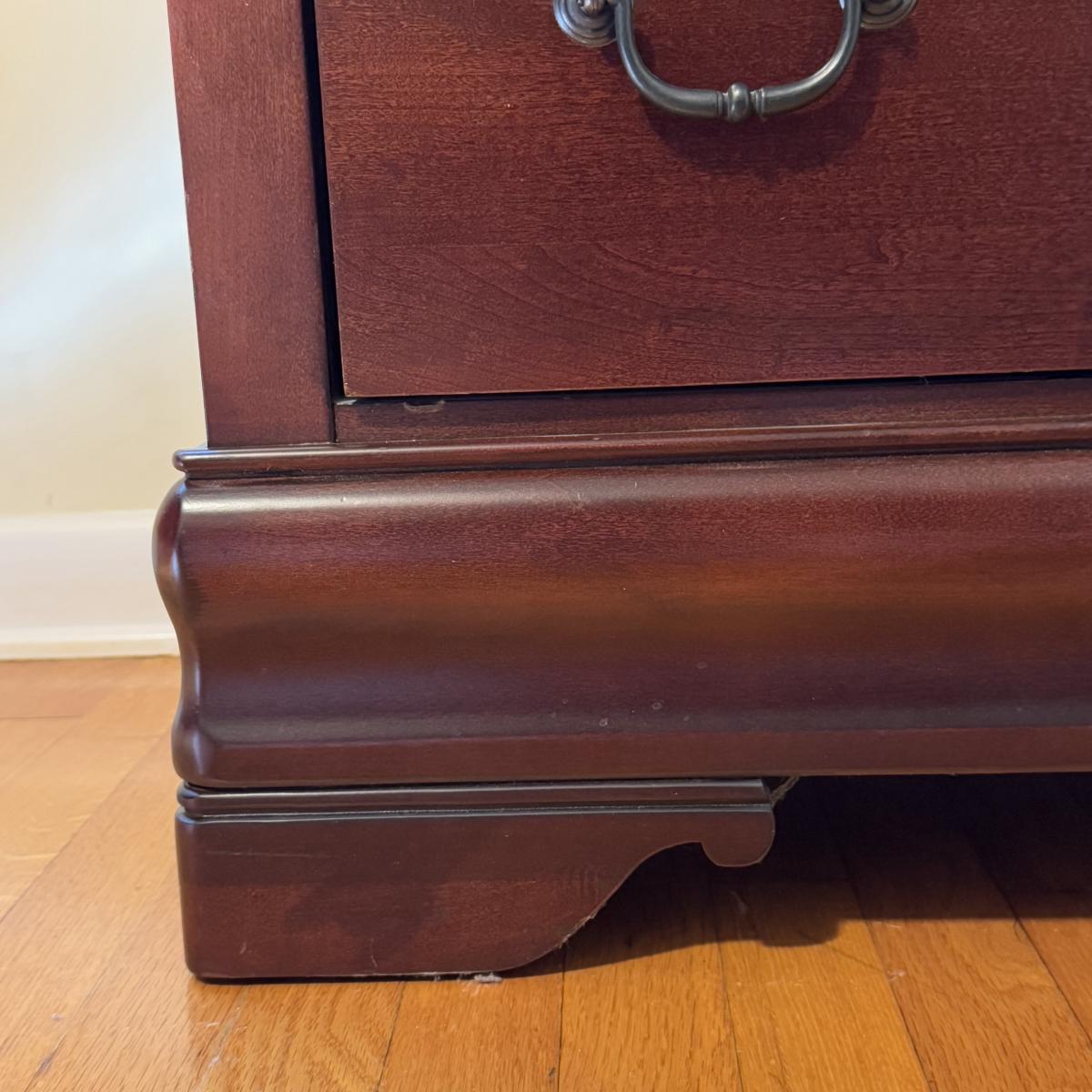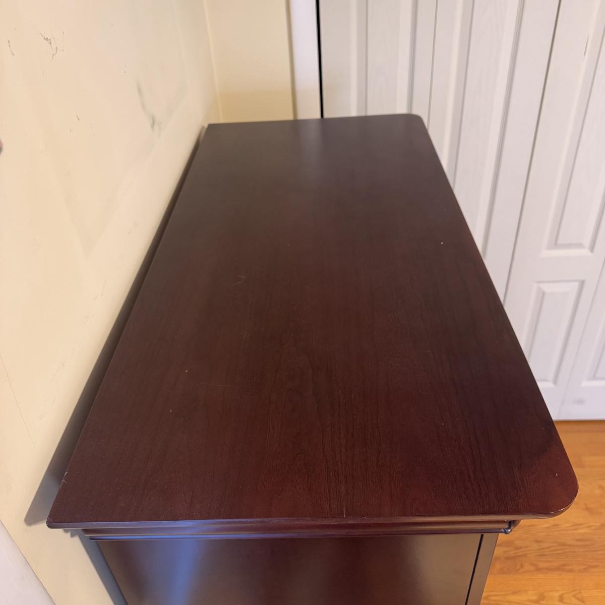 Lot includes one solid wood Broyhill dresser with five drawers. The drawers are made of wood and have metal handles. The dresser measures 40” x 19” x 55”H. Local pickup only. Winning bidder must bring assistance to help move and load this item due to its weight and/or size.