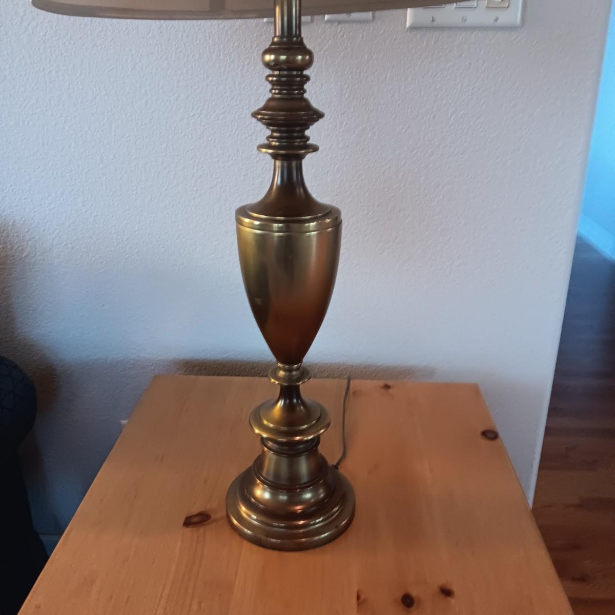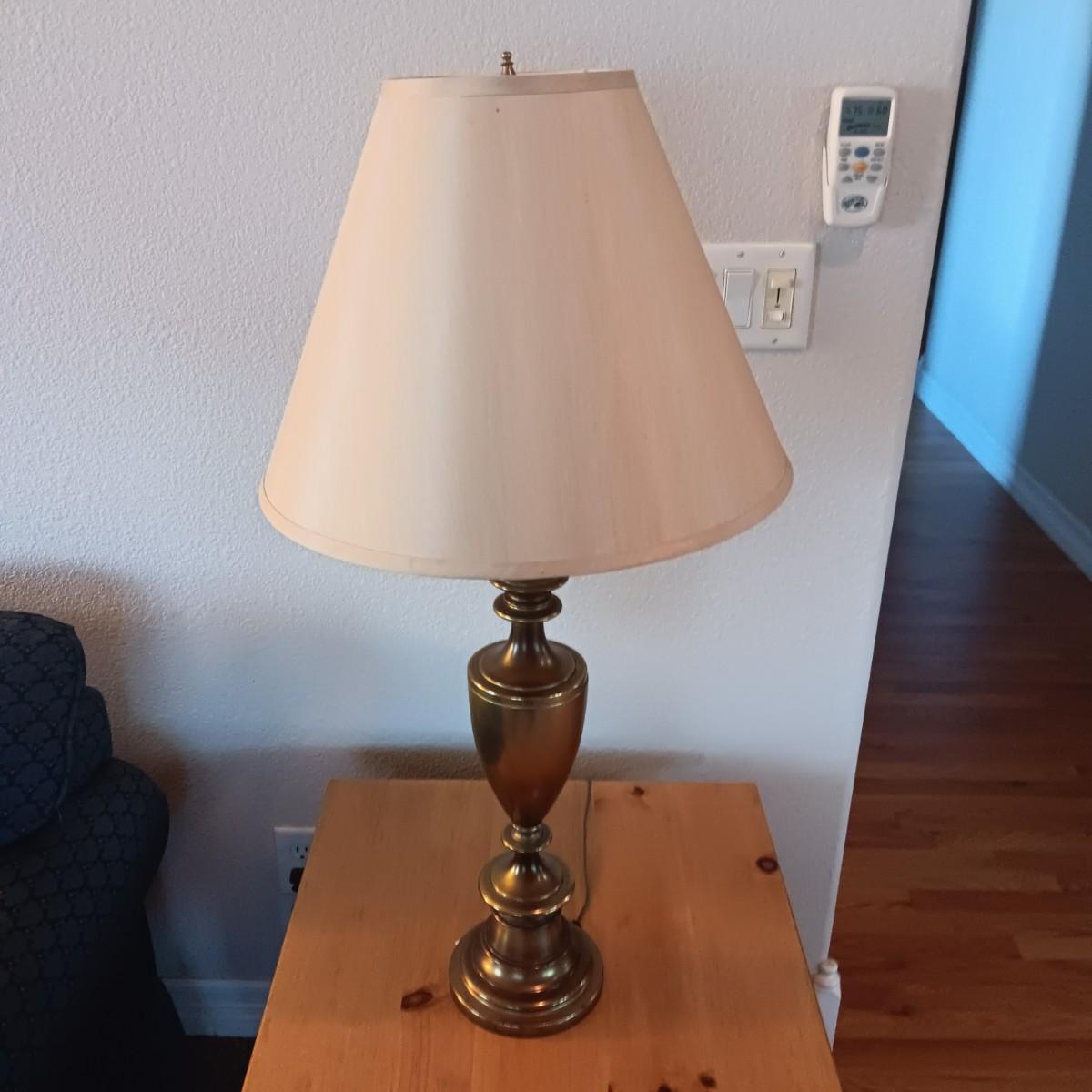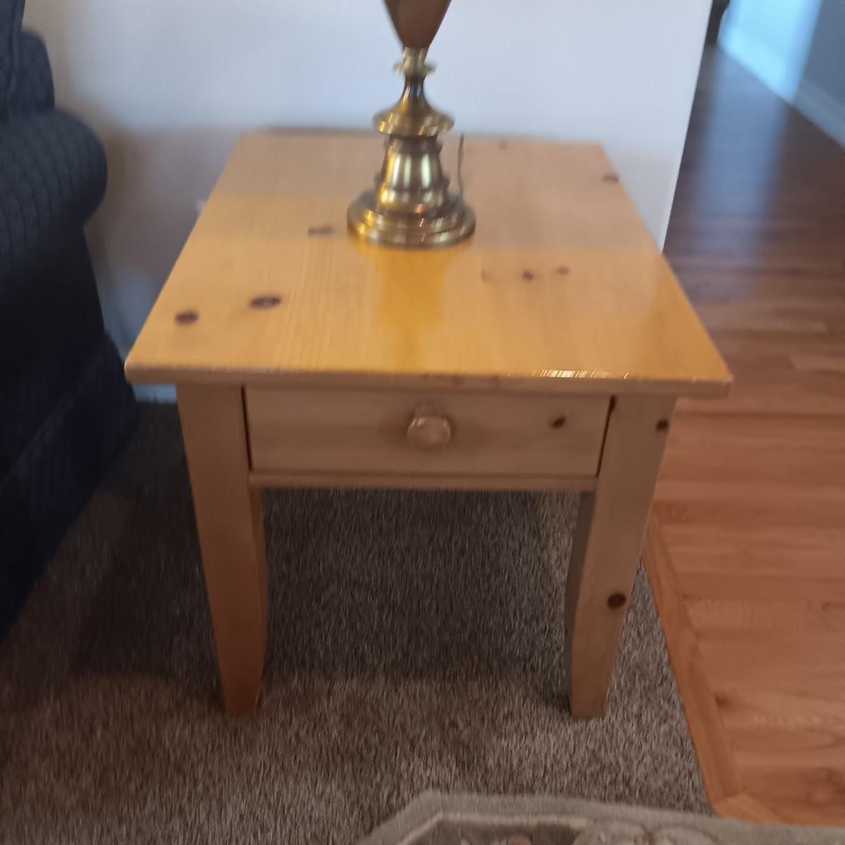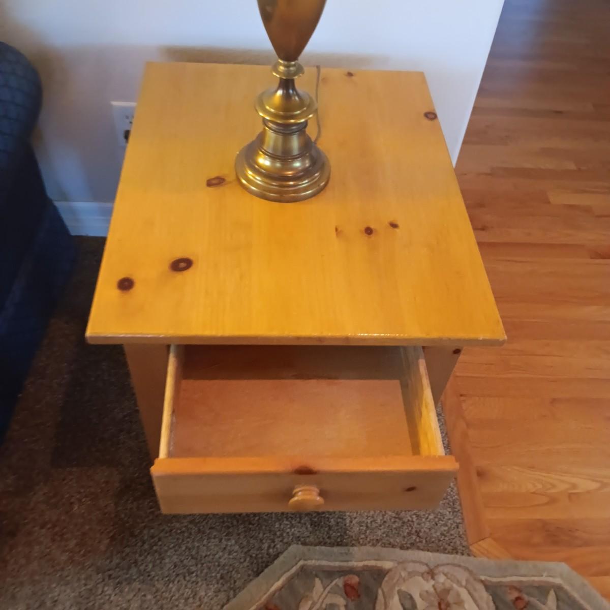 BROYHILL KNOTTY PINE END TABLE W/1 DRAWER PLUS BRASS BASE LAMP
