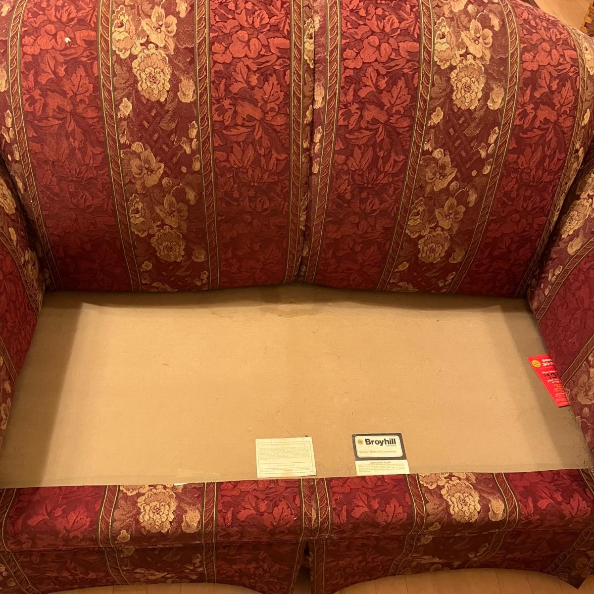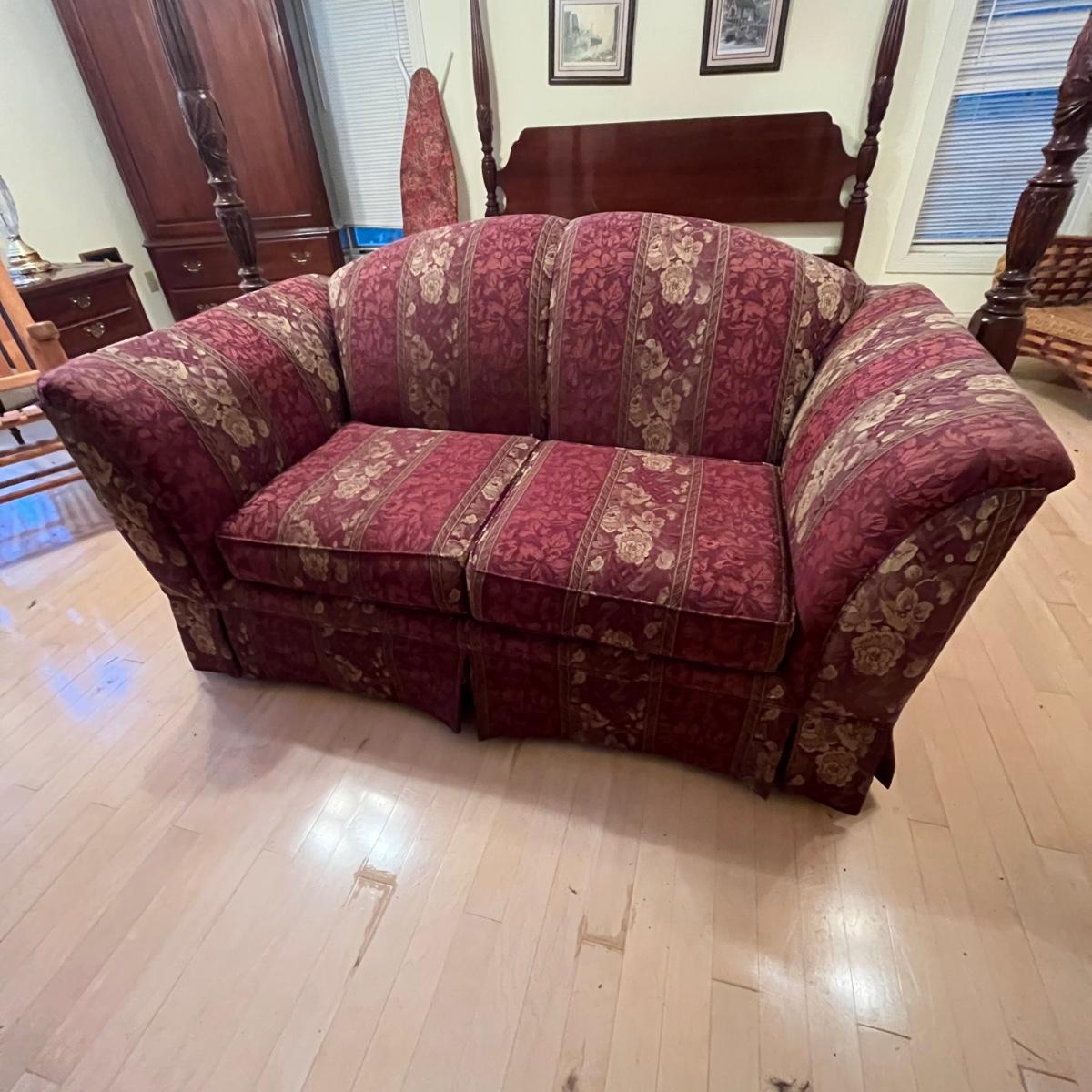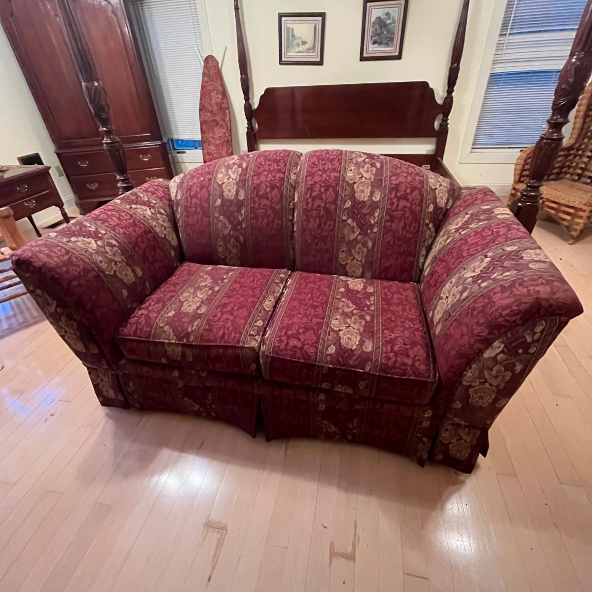 Lot includes a Broyhill loveseat that measures 36” x 64” x 35” with a 18” seat height. Loveseat is in good shape, but under cushions is dirty. Bring help item is substantial. Please note this was a smoking household and fabric does hold the smell Local Pickup Only