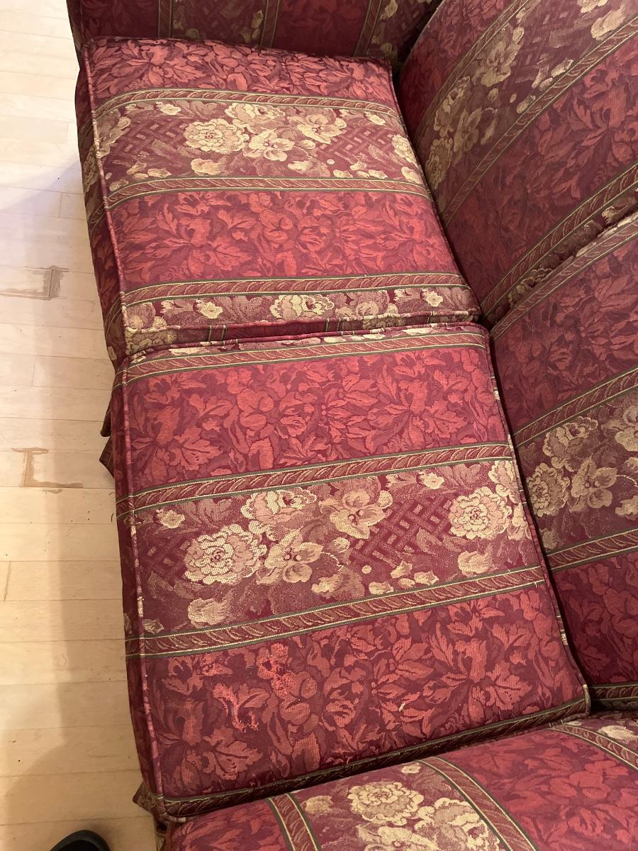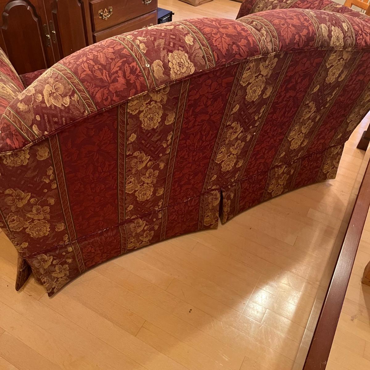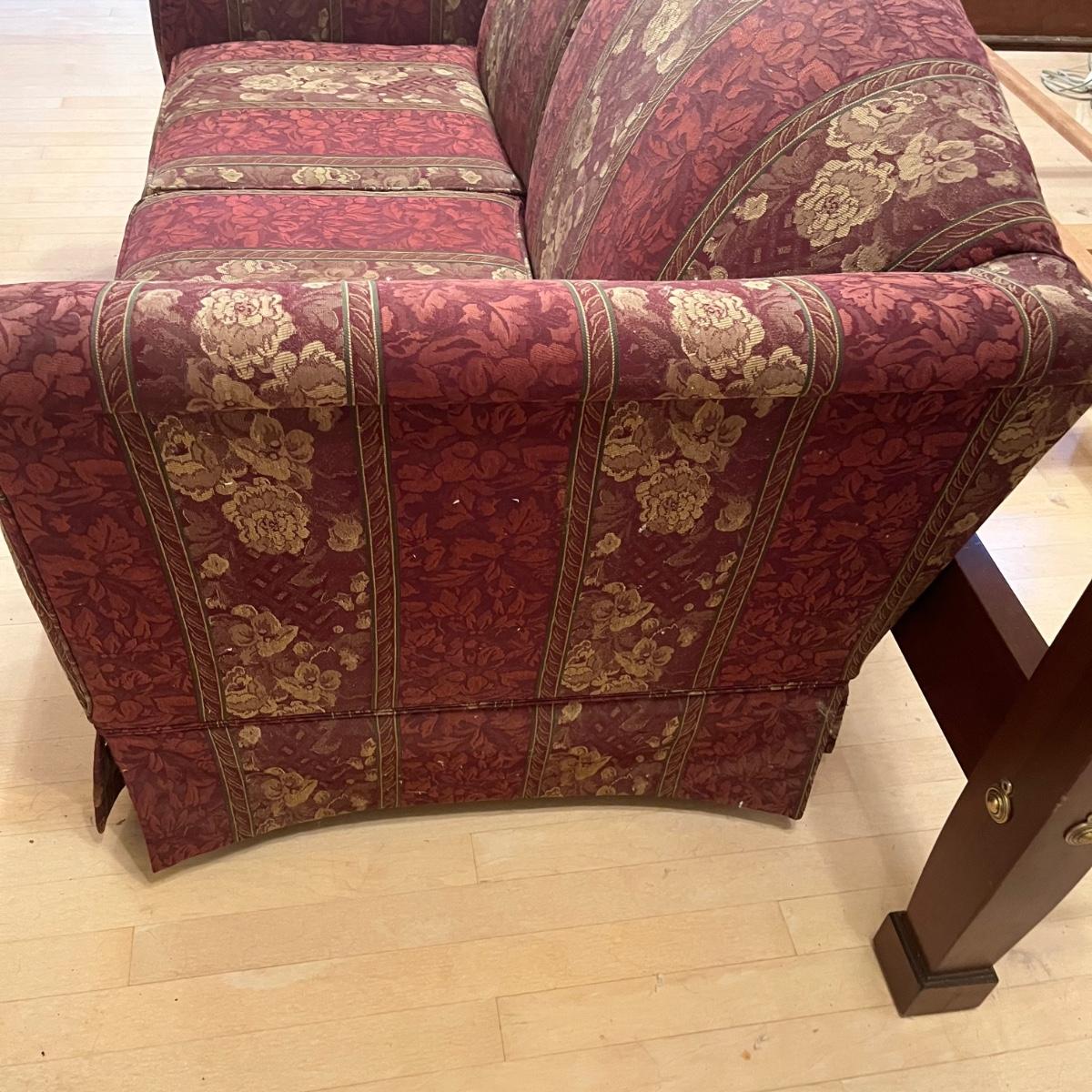 Lot includes a Broyhill loveseat that measures 36” x 64” x 35” with a 18” seat height. Loveseat is in good shape, but under cushions is dirty. Bring help item is substantial. Please note this was a smoking household and fabric does hold the smell Local Pickup Only