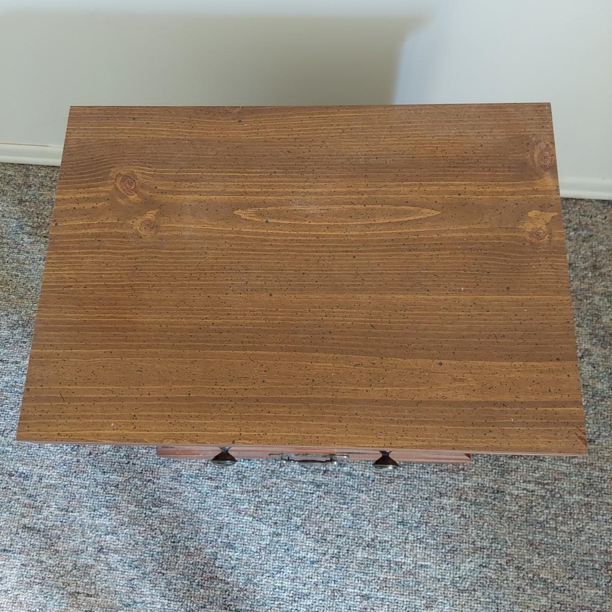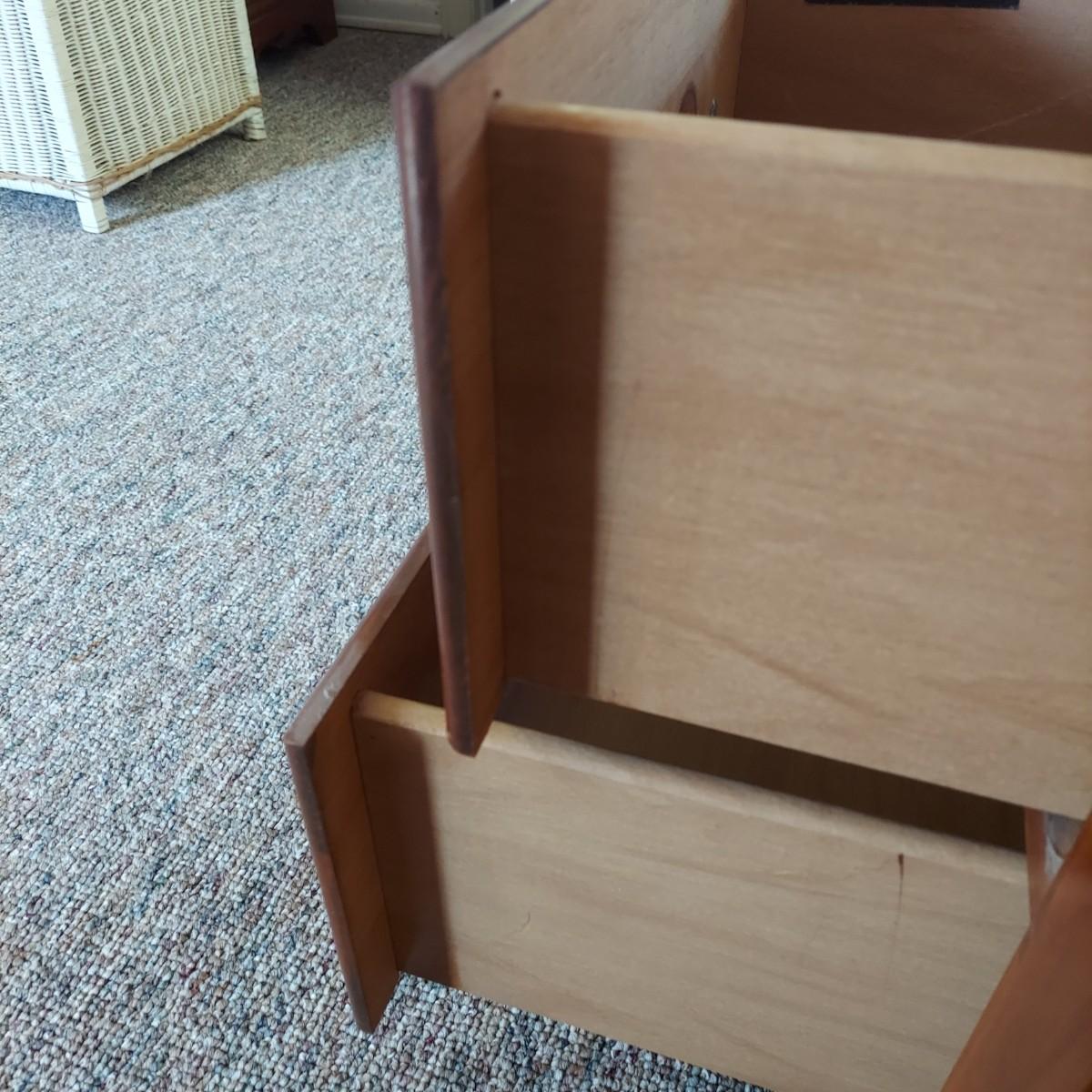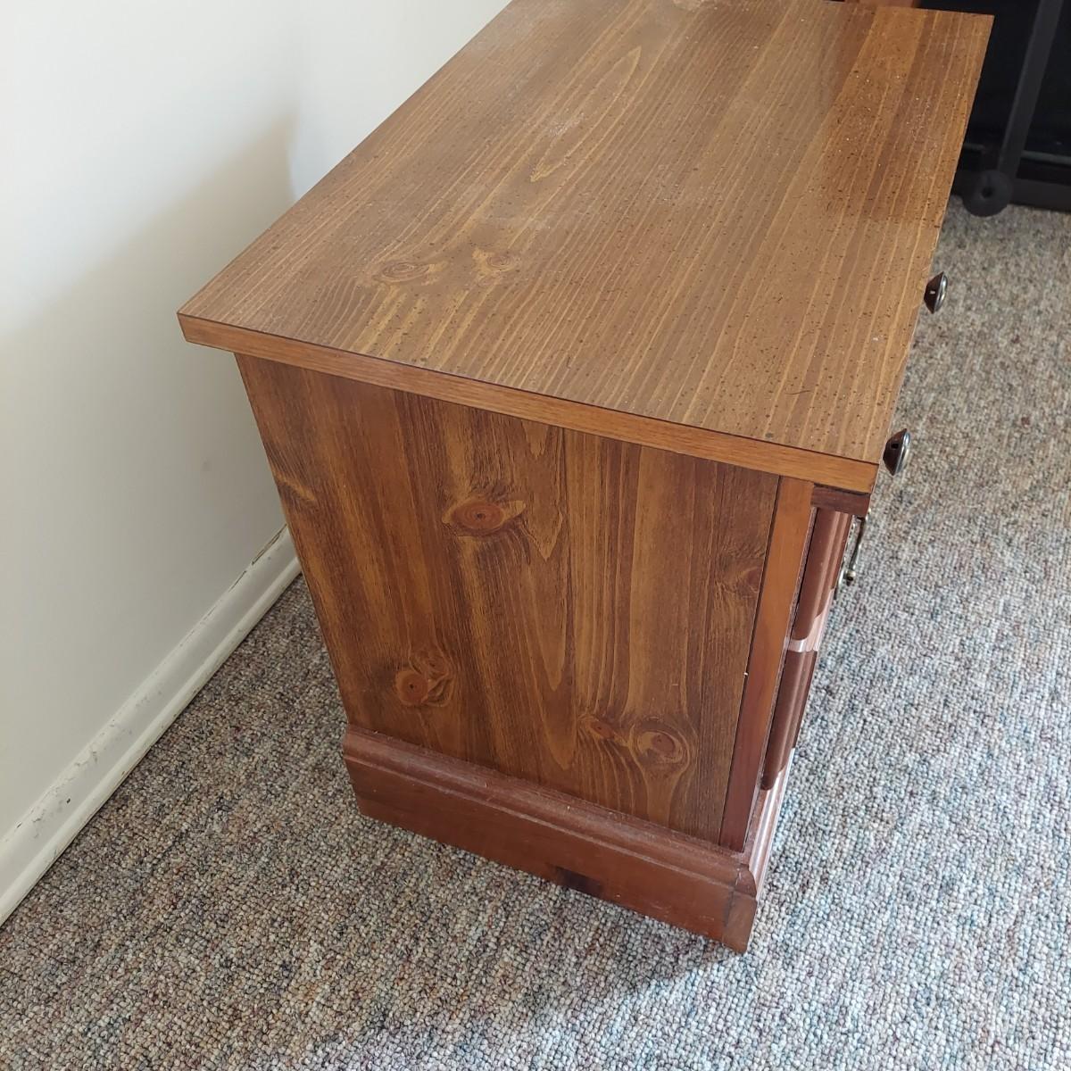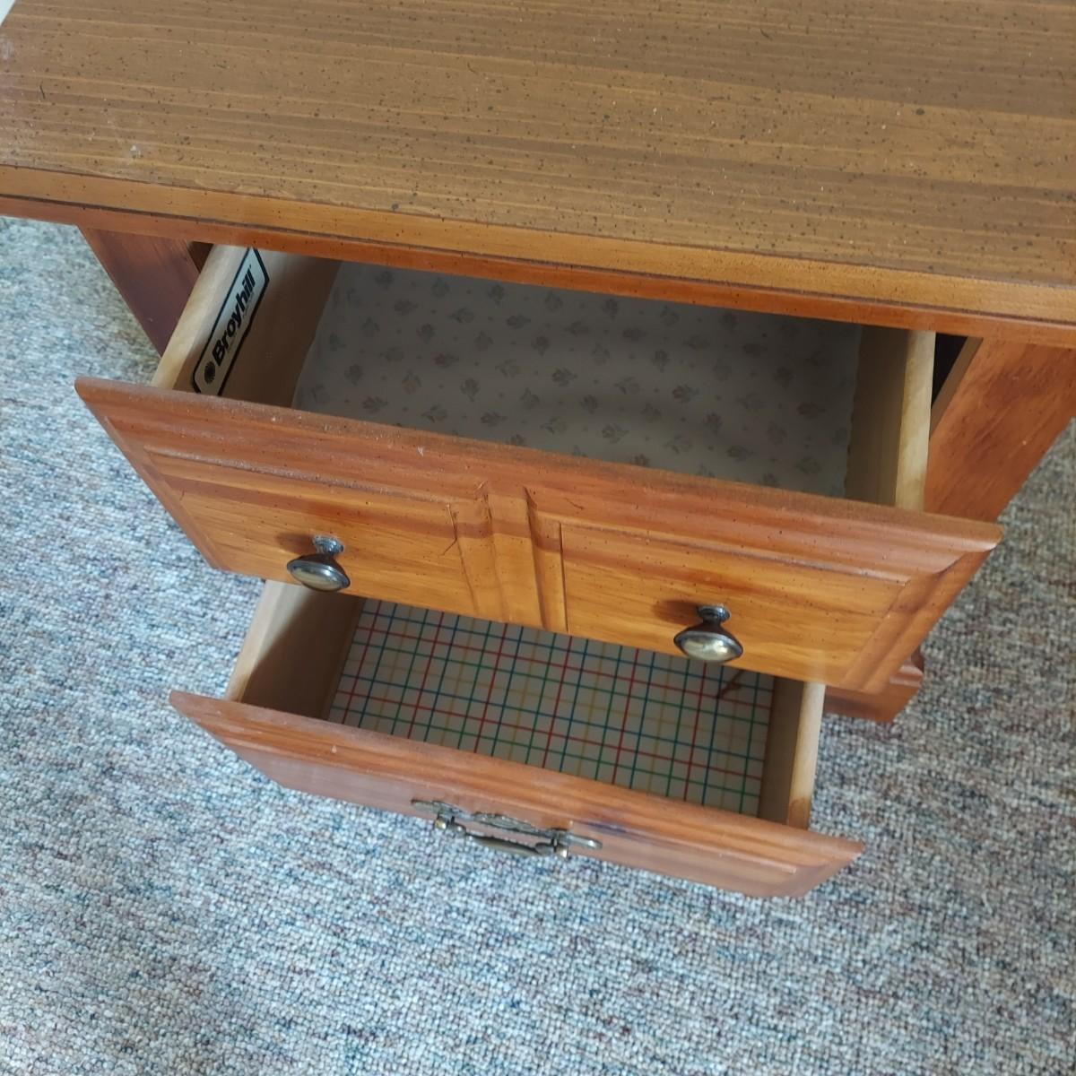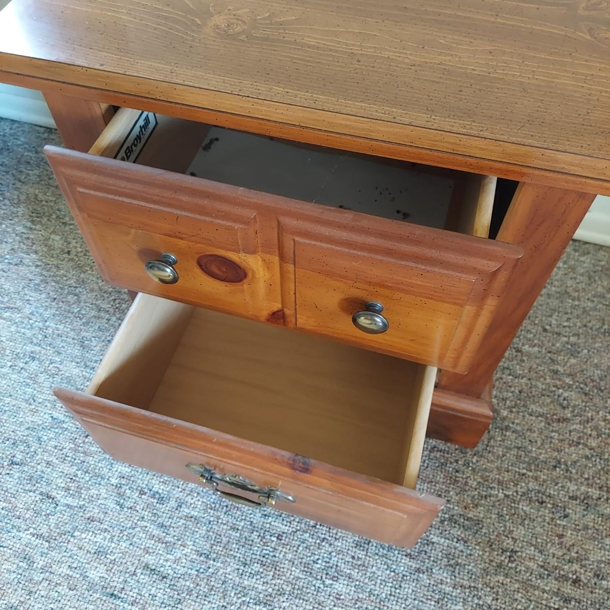 Two wooden Broyhill nightstands with two drawers. They appear to be made from a mix of real wood with an engineered wood top that has a faux walnut veneer. They measure 22" x 15" x 22.5H. Local Pickup Only