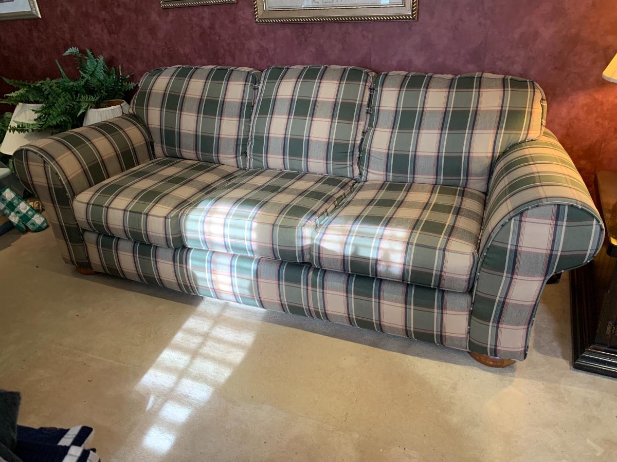 Super comfy plaid sofa with removable seat cushions. In like new condition.