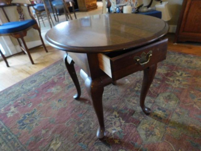 Broyhill Queen Ann Style Oval Side Table with Drawer 26"x23"x23" legs need tightening. Expect some wear or scratches