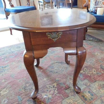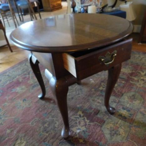 Broyhill Queen Ann Style Oval Side Table with Drawer 26"x23"x23"