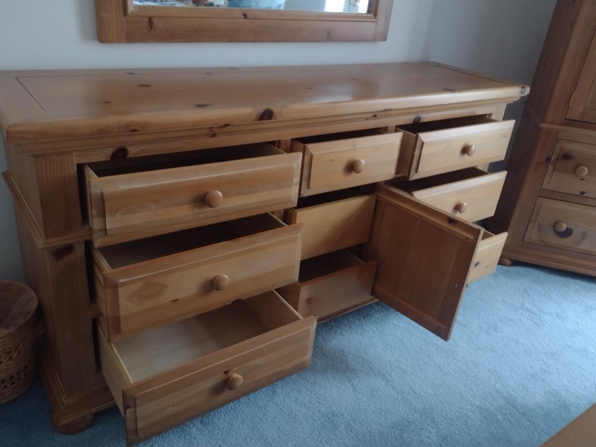 Broyhill Solid Pine Stretch Dresser. Approx 71" long. Upstairs item. Please bring assistance to remove safely.