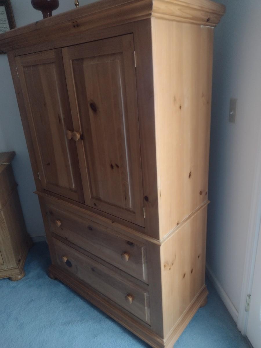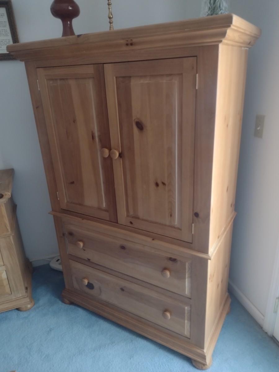 Broyhill Solid Wood Pine Armoire Media Center (No Contents). This is an upstairs item. Please bring assistance to safely remove.