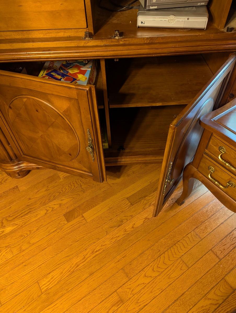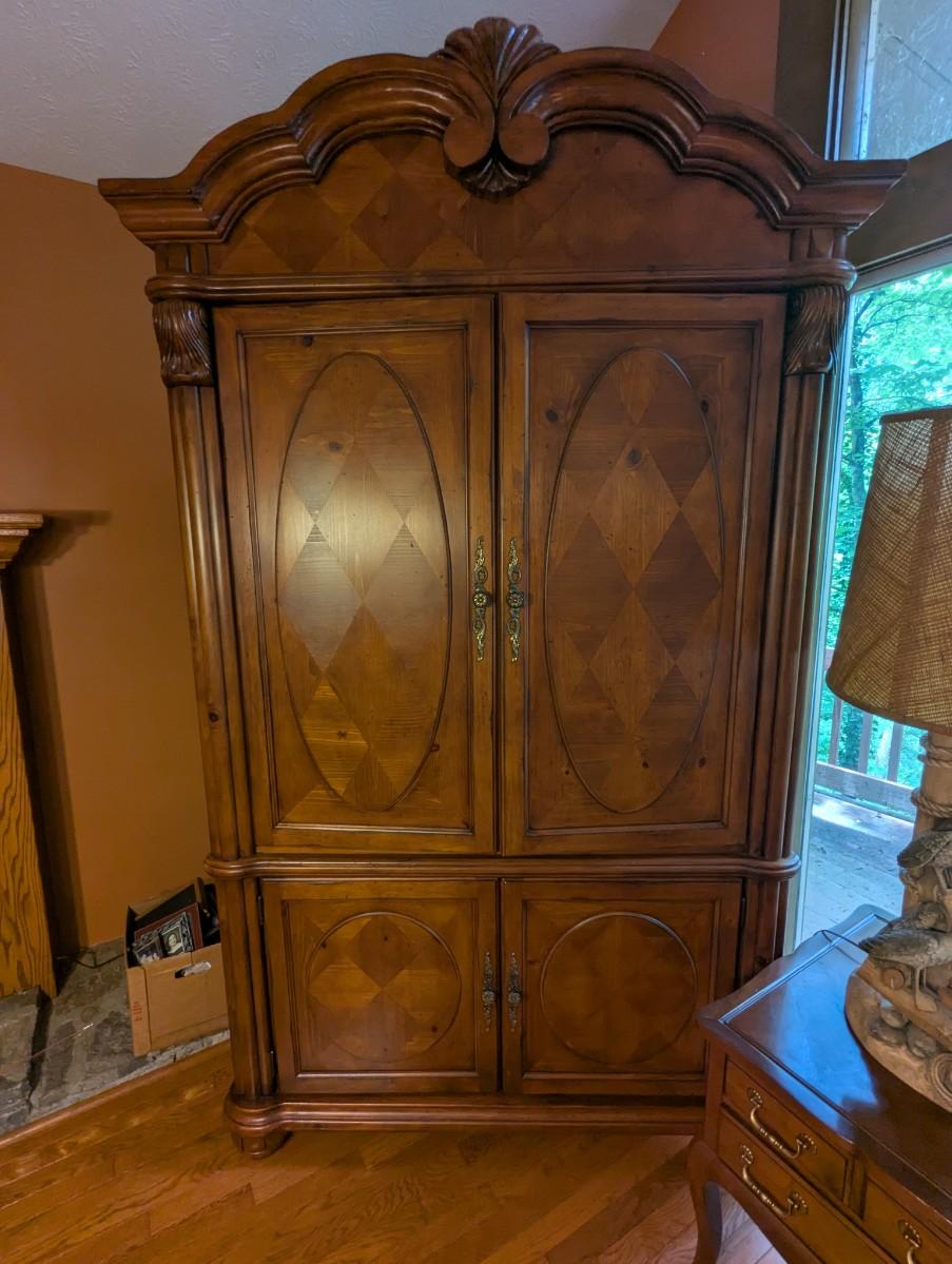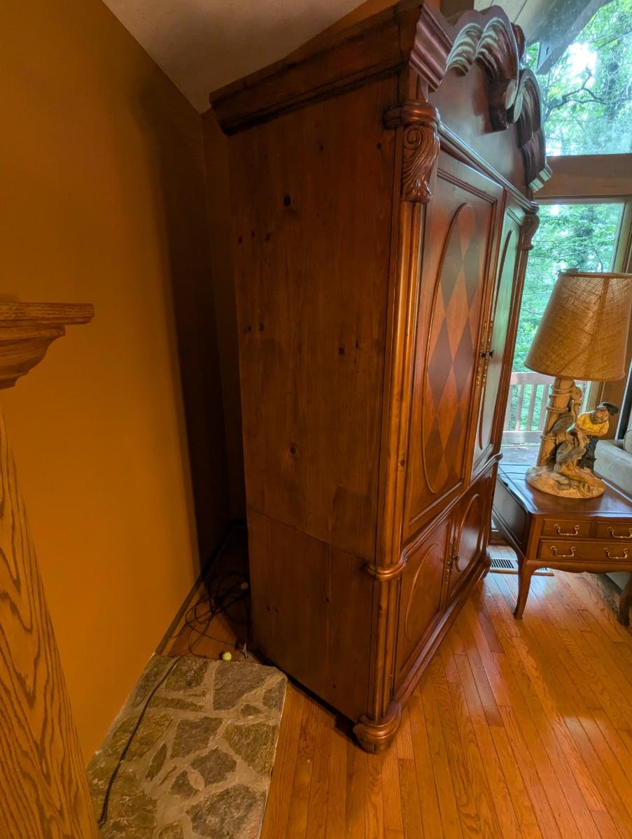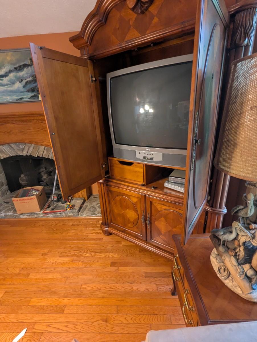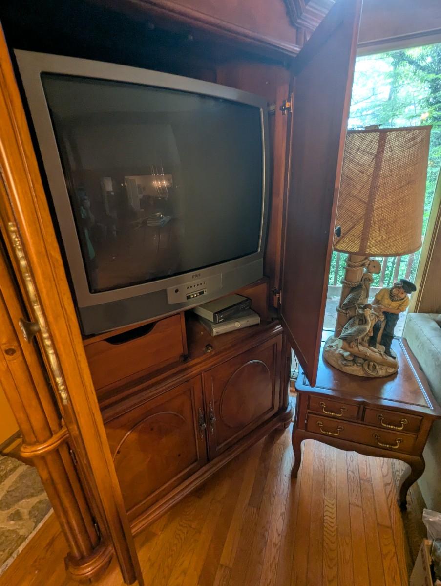 You don't have to take the TV, but you will have to take the TV out of the cabinet