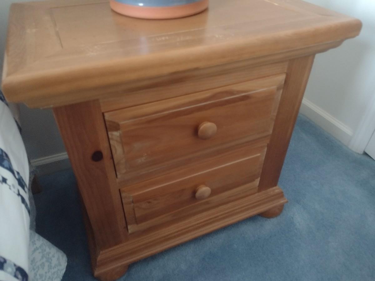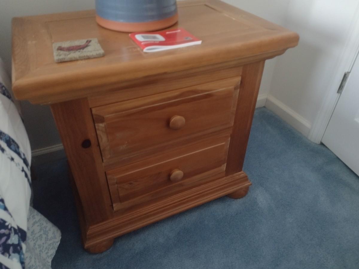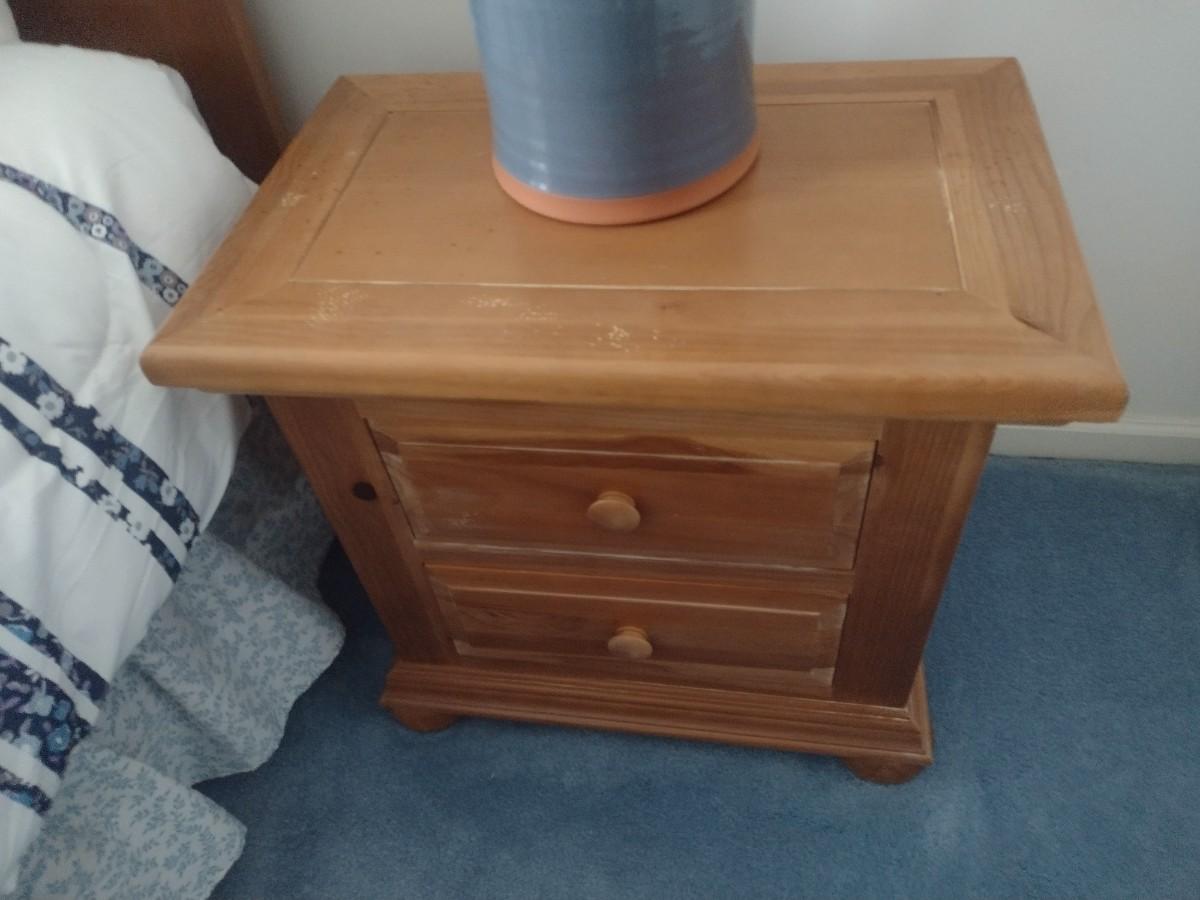 Broyhill Two Drawer Solid Wood Pine Bedside Dresser Choice B. Upstairs item. Please bring assistance to remove safely.