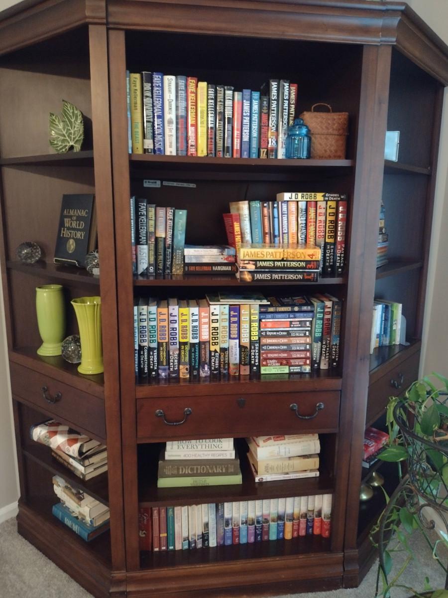 Broyhill Wood Finish Bookshelf with Drawer- Approx 30" x 19" x 76" Tall (Center Unit Only). No contents.
