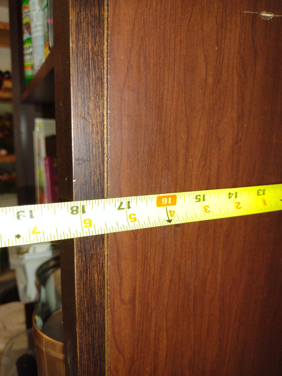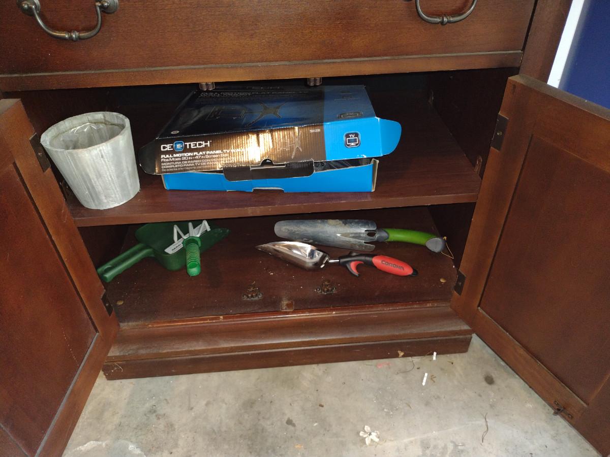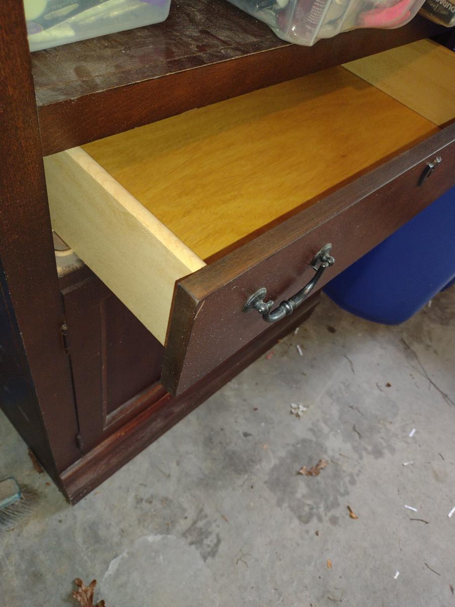 Broyhill Wood Finish Bookshelf/Storage Cabinet. Item was used in garage, so may have scratches/flaws/discoloration to finish.