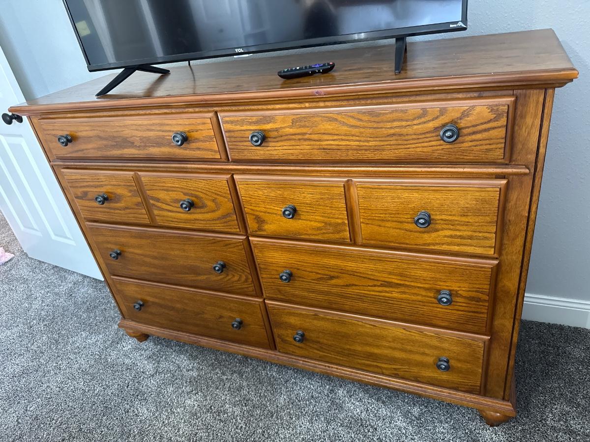 In very nice condition. Dimensions are 60 inches wide by 42 inches tall by 18 inches deep..