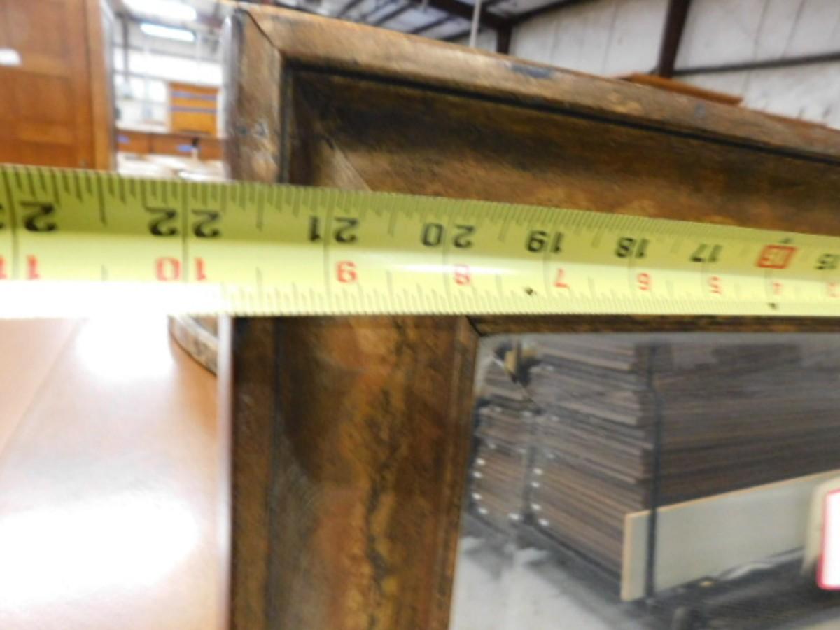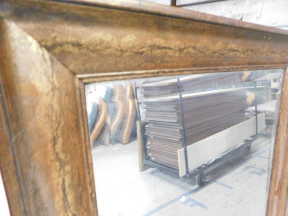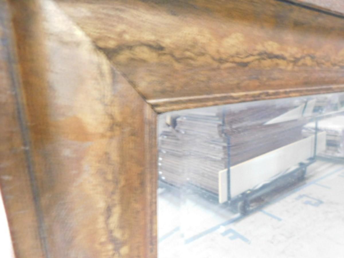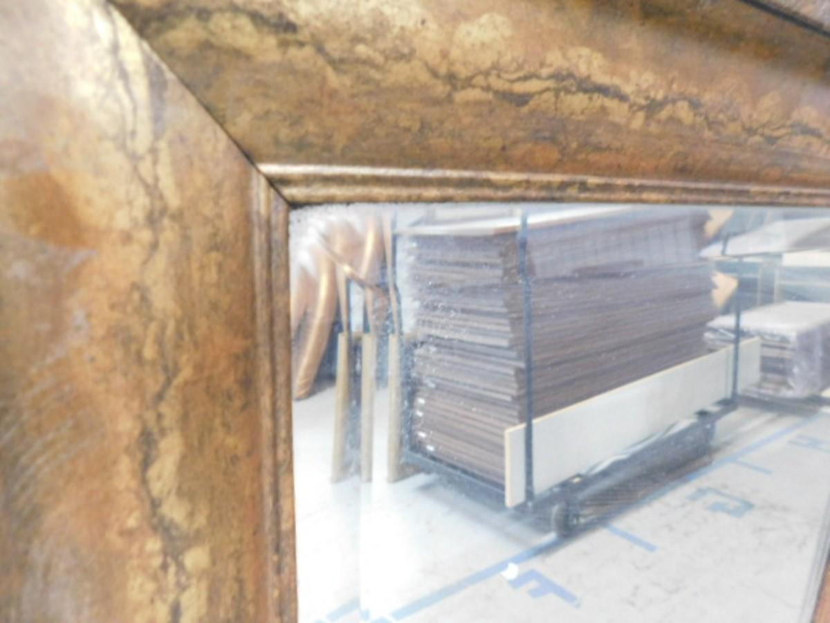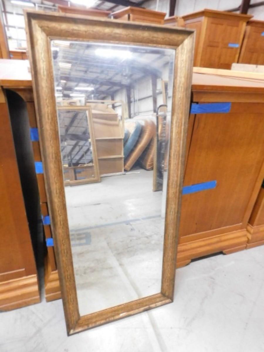 Broze Tone Simulated Wood Finish Framed Beveled Glass Full Length Mirror Choice A Expect some wear or scratches to the finish. Shipping option available via freight or local mover at Buyer's expense. Buyer must have all shipping scheduled within the stated dates and times of pickup. Recommended local mover is Beaty Bros. Moving 828-201-2982
