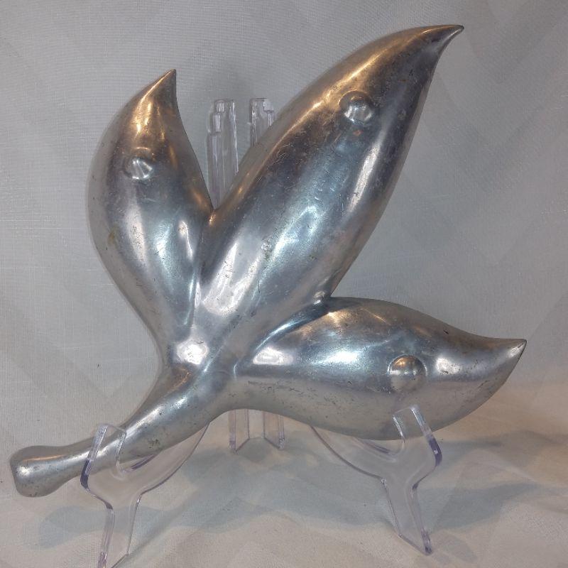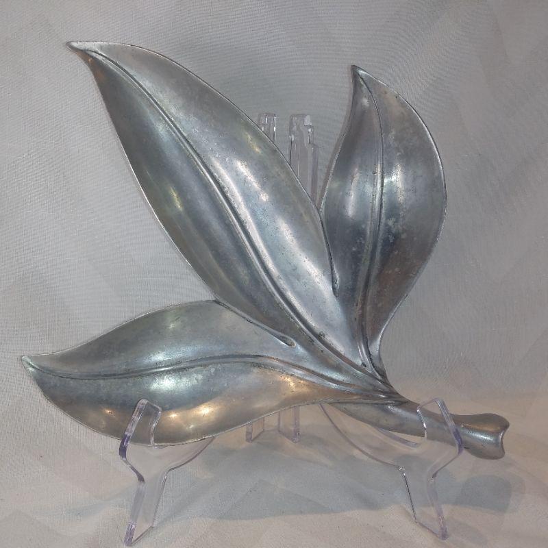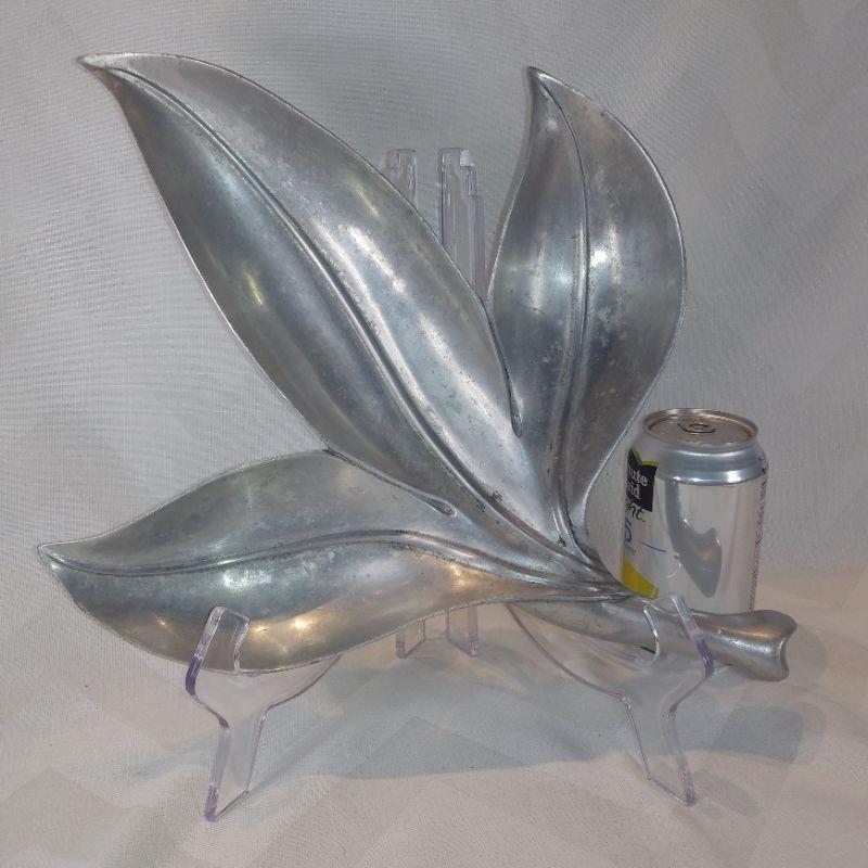 This auction lot is for a Vintage Bruce Fox Leaf Dish. This dish is an aluminum 3 section dish. It is marked with the Bruce Fox standard signature on the back but hard to see. The dish measures about 15-inches from tip to base and about 12-inches from side to side. It is in very good condition for it age and use.