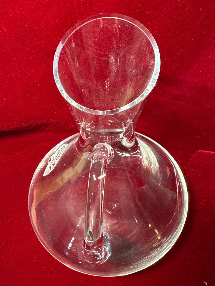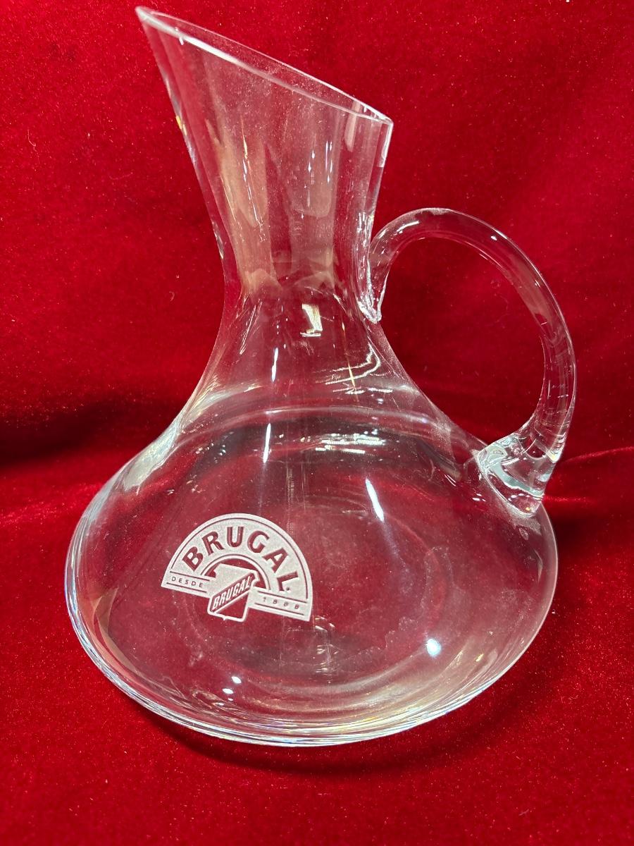Vintage Vetreria like clear wine decanter with Brugal logo. 10”h