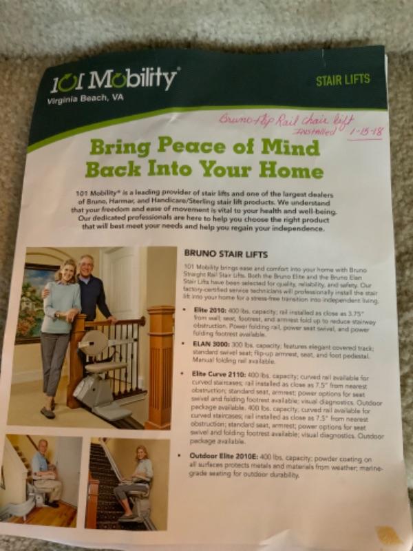 Bruno SRE-3000 Straight Rail Stairlift Lot 2282