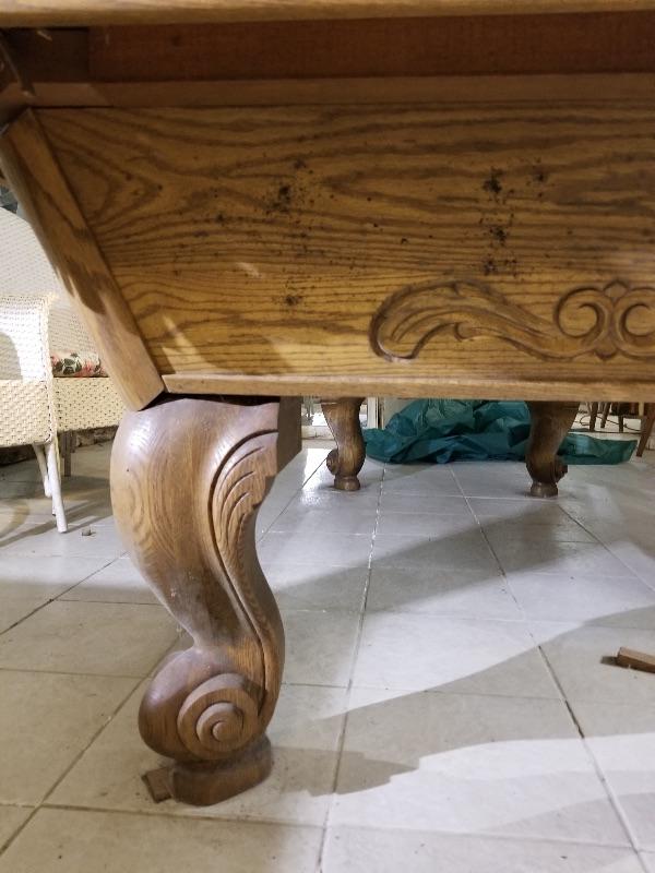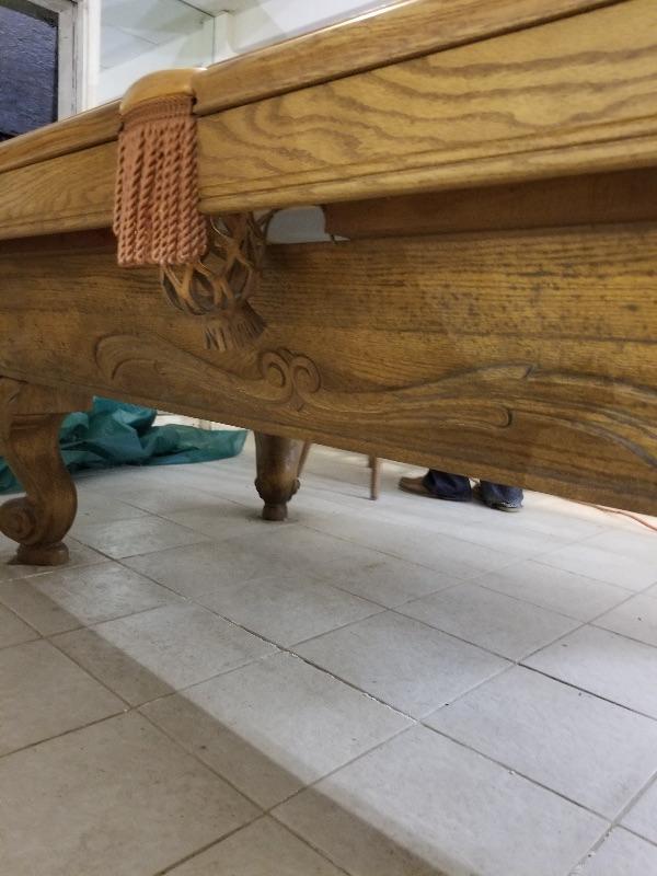 We have listed below two (2) pool table breakdown and setup companies that can move this table and reinstall it for $400.00 to $500.00 call Charles on 443-871-0716 or contact Cue Dudes at cuedudes.com or on 410-266-5418.