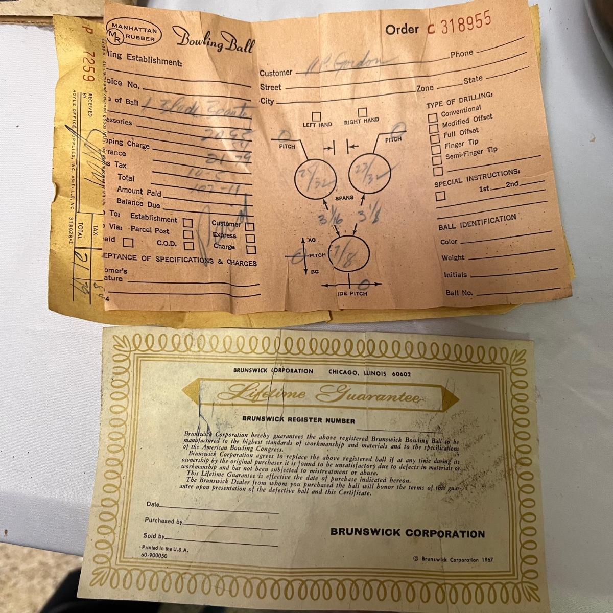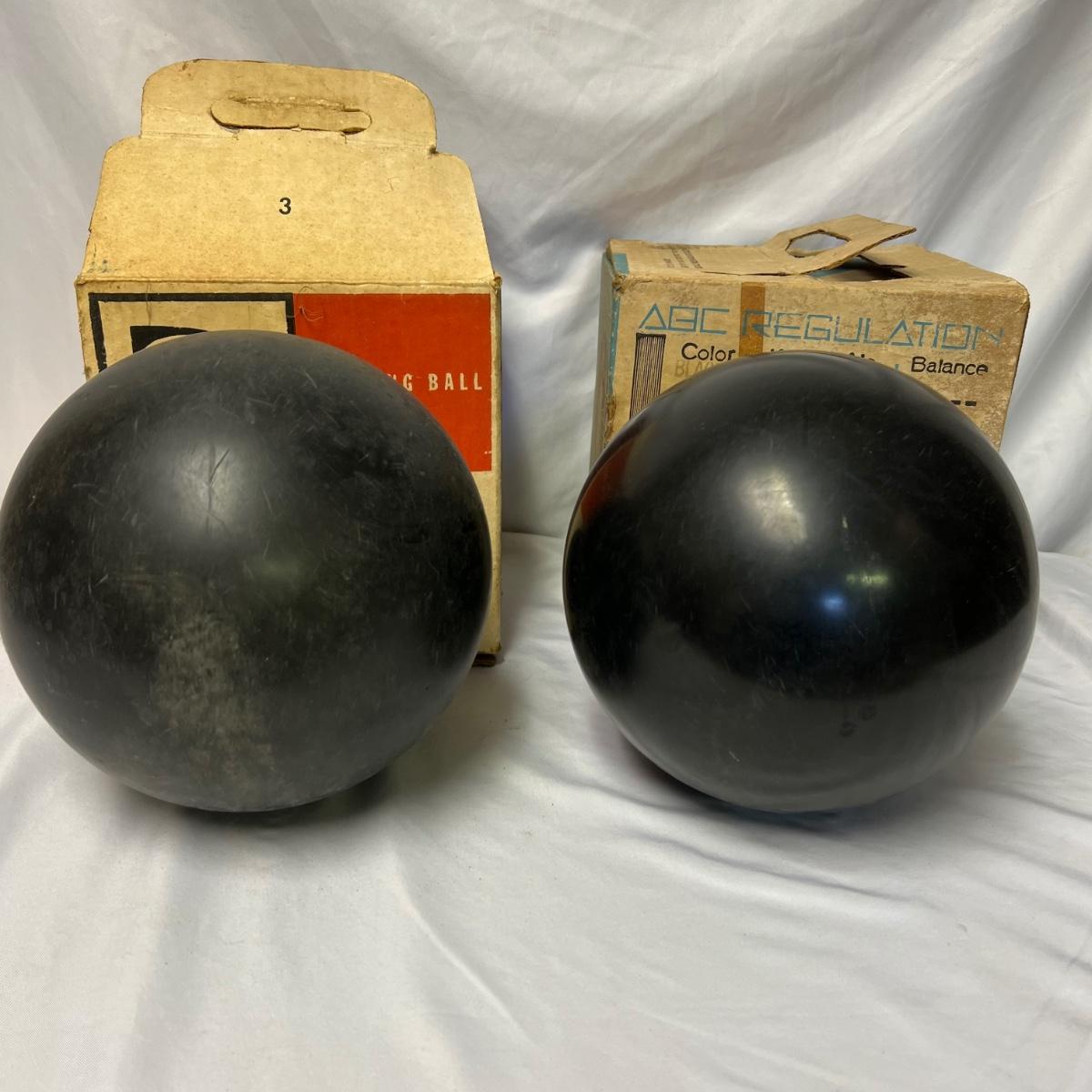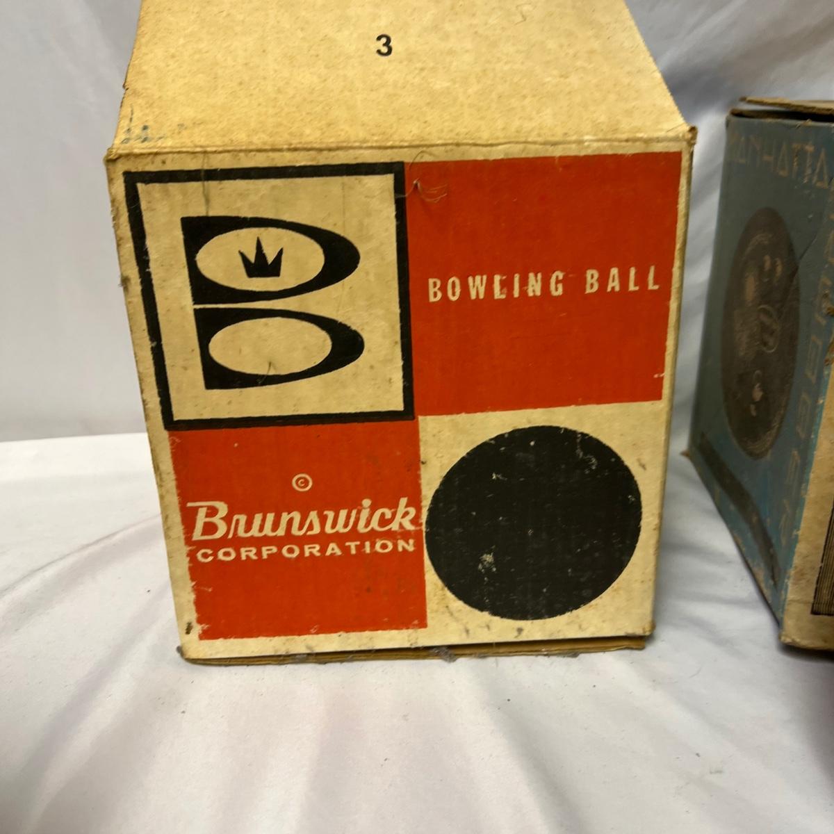 Two bowling balls in this lot come complete with their original boxes. See images for any information found.