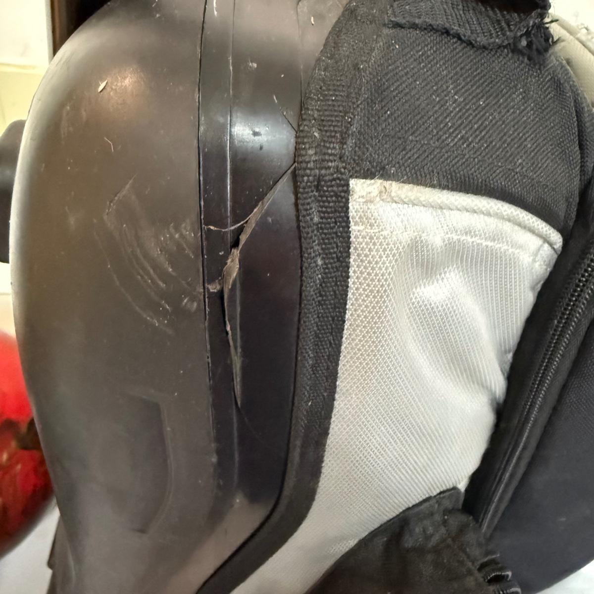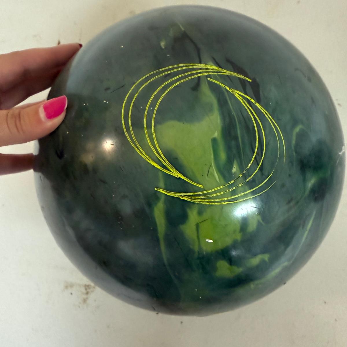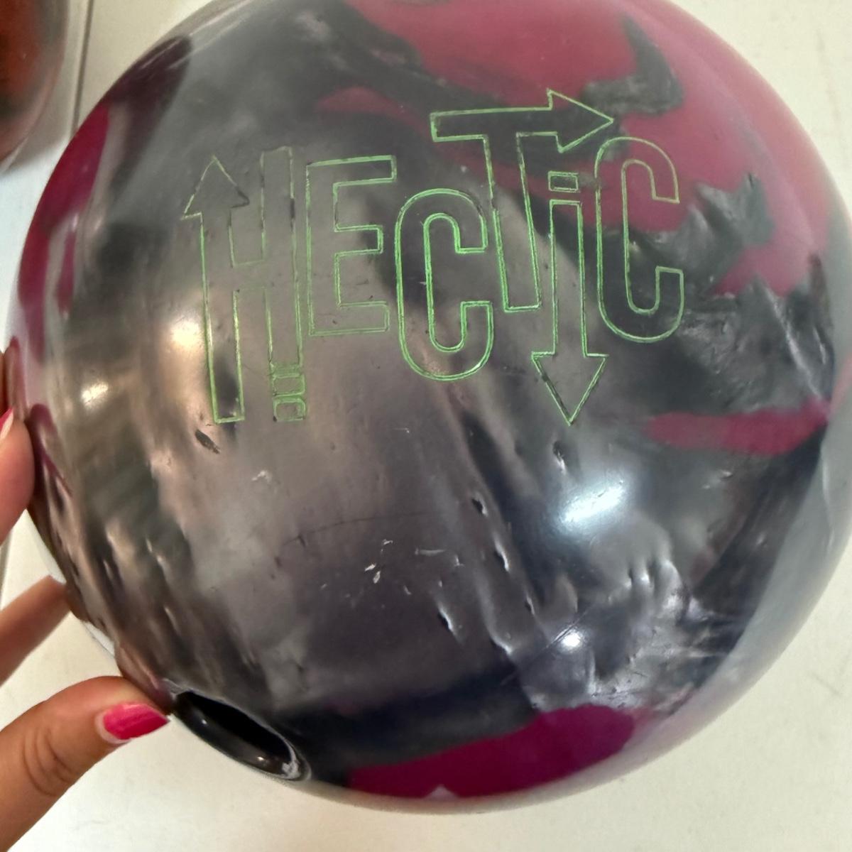 This lot contains a Brunswick rolling bowling bag as well as three balls and a pair of men’s size 10.5 bowling shoes. The bag is made of fabric and plastic and measures 10” x 15” x 38”H with handle. There is a crack in a corner of the hard plastic, see pictures for details. Of the bowling balls the first is a blue/green ball stamped “Voltage”, “Circle” and "6CK00179". The next is a Brunswick Zone bowling ball with black red and gold marble. The last is a deep magenta and silver Roto Grip Hectic bowling ball. Last item is a pair of Dexter men’s bowling shoes size 10.5. Local pick up only.