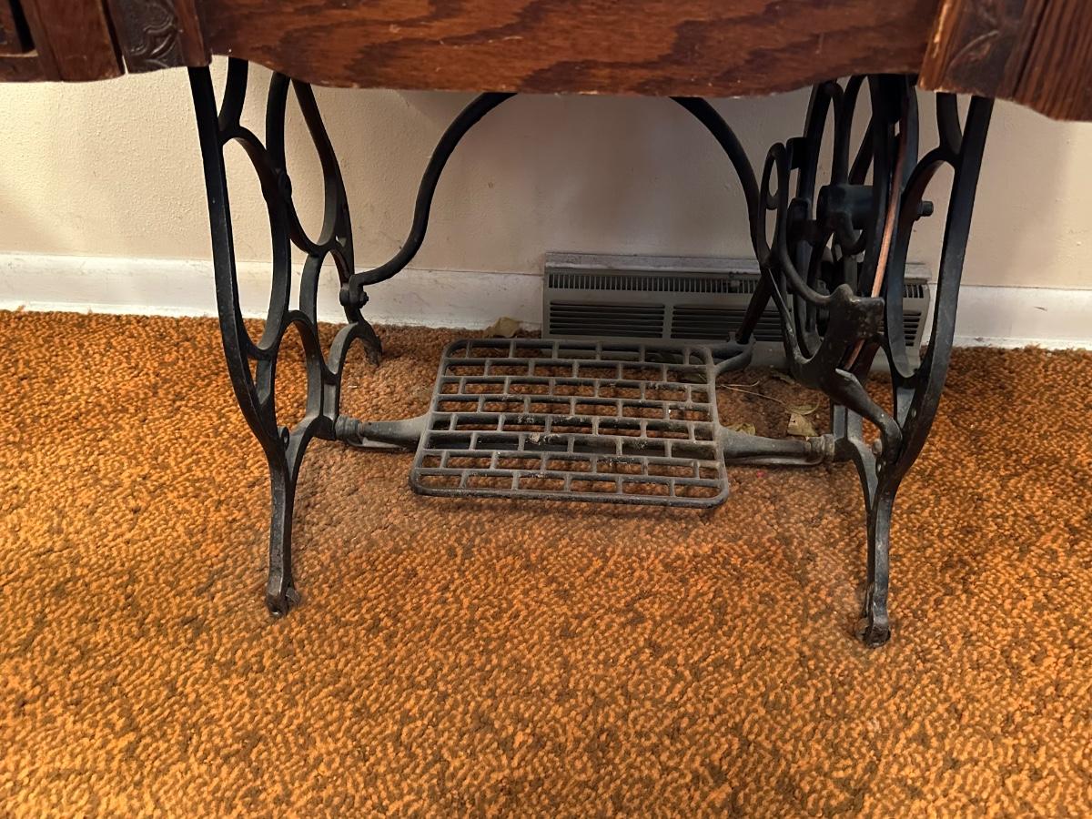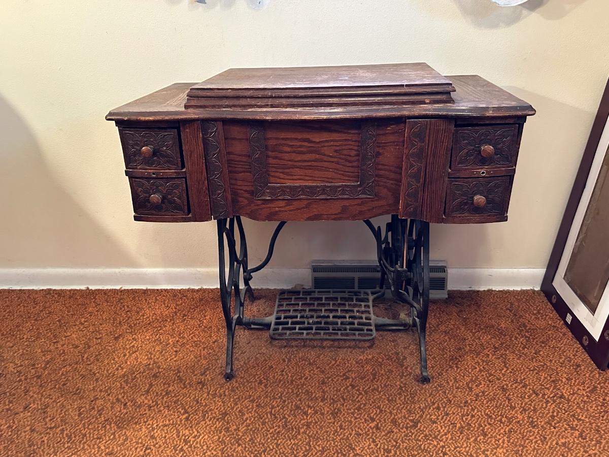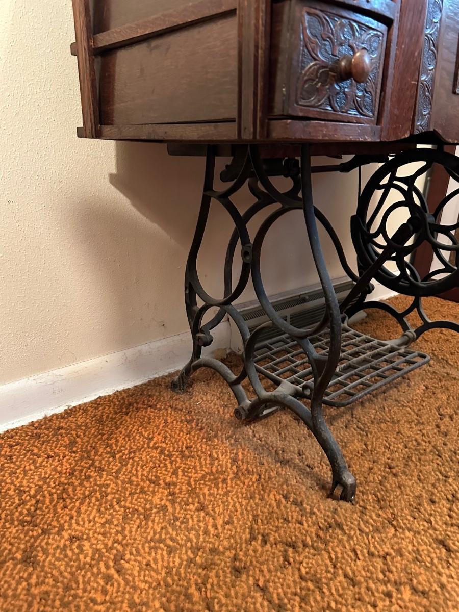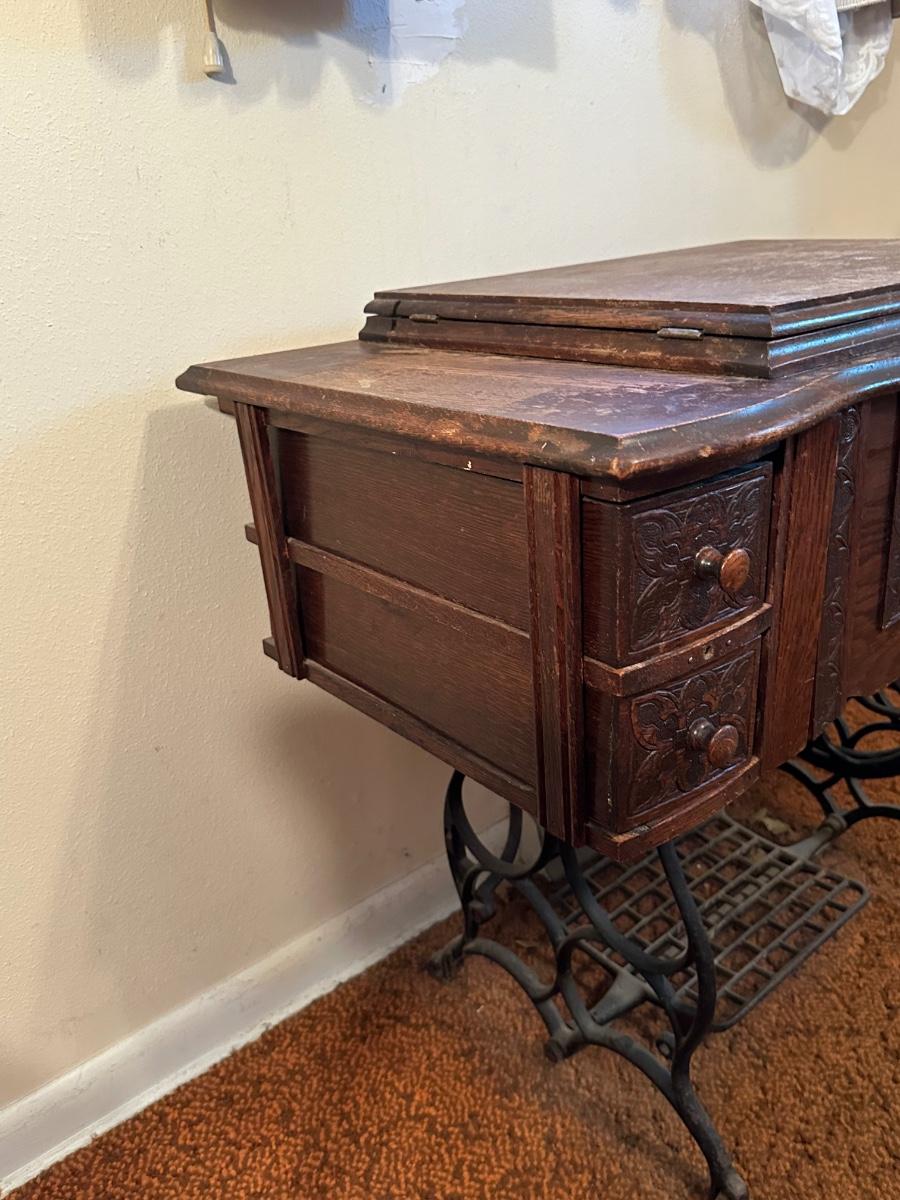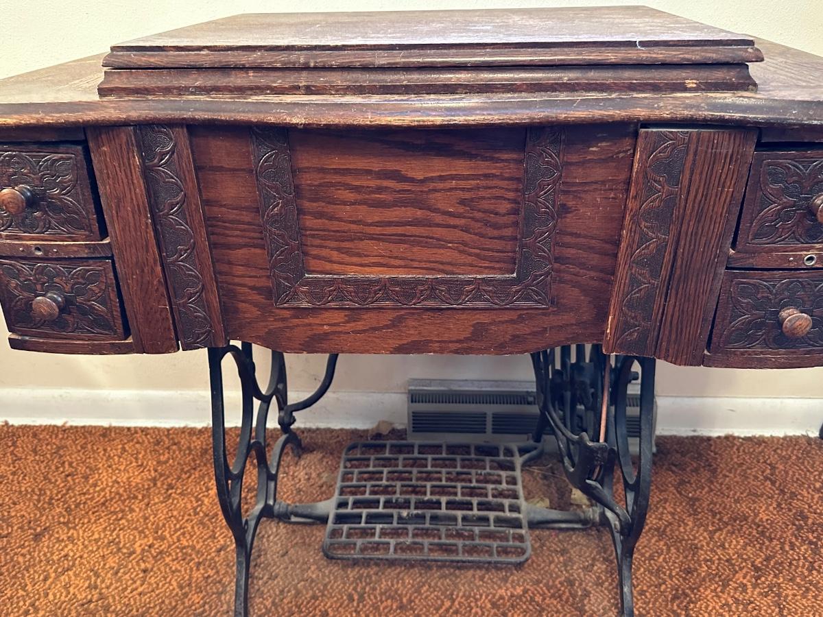 BRUNSWICK TREADLE SEWING MACHINE IN CABINET