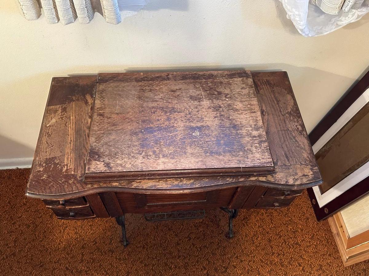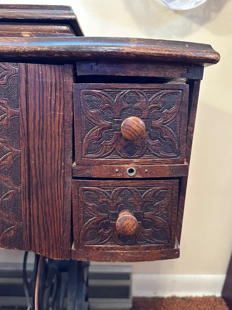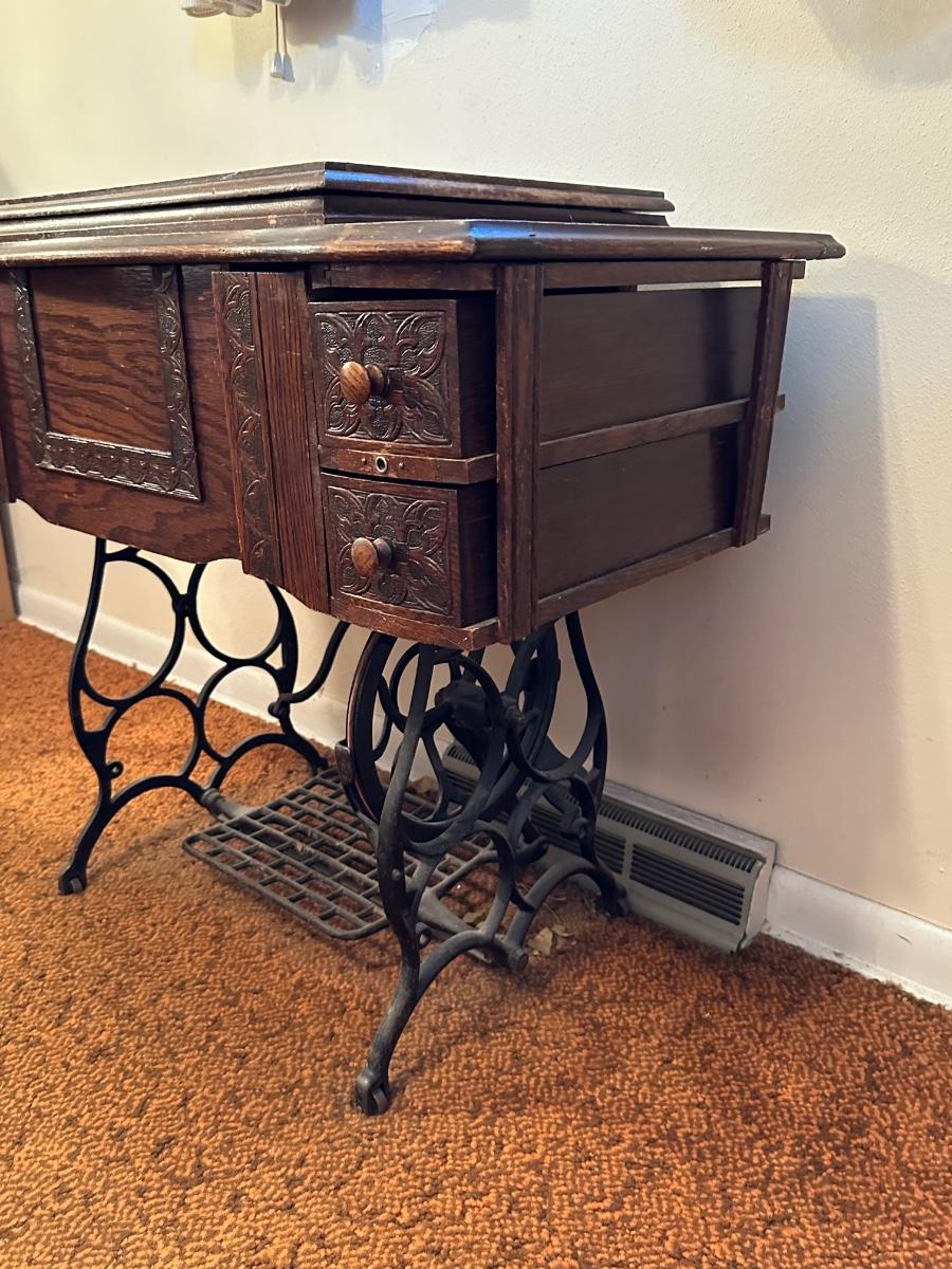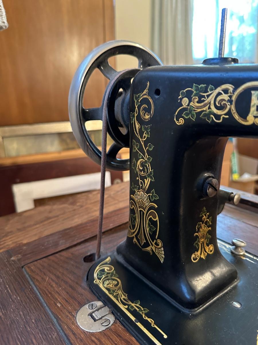 BRUNSWICK TREADLE SEWING MACHINE IN CABINET