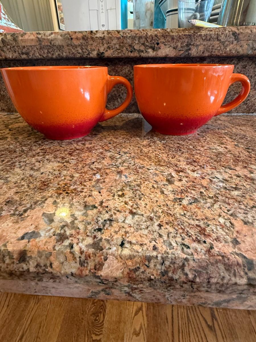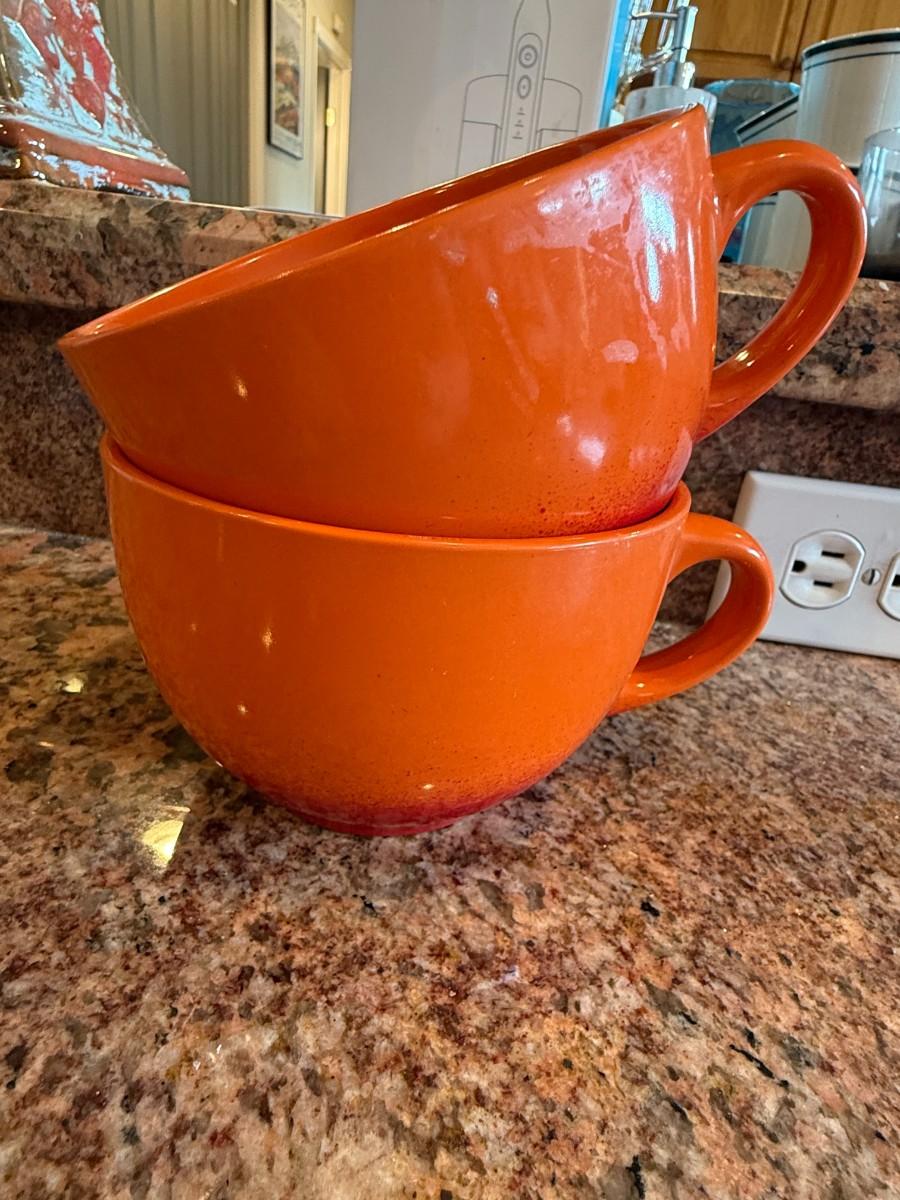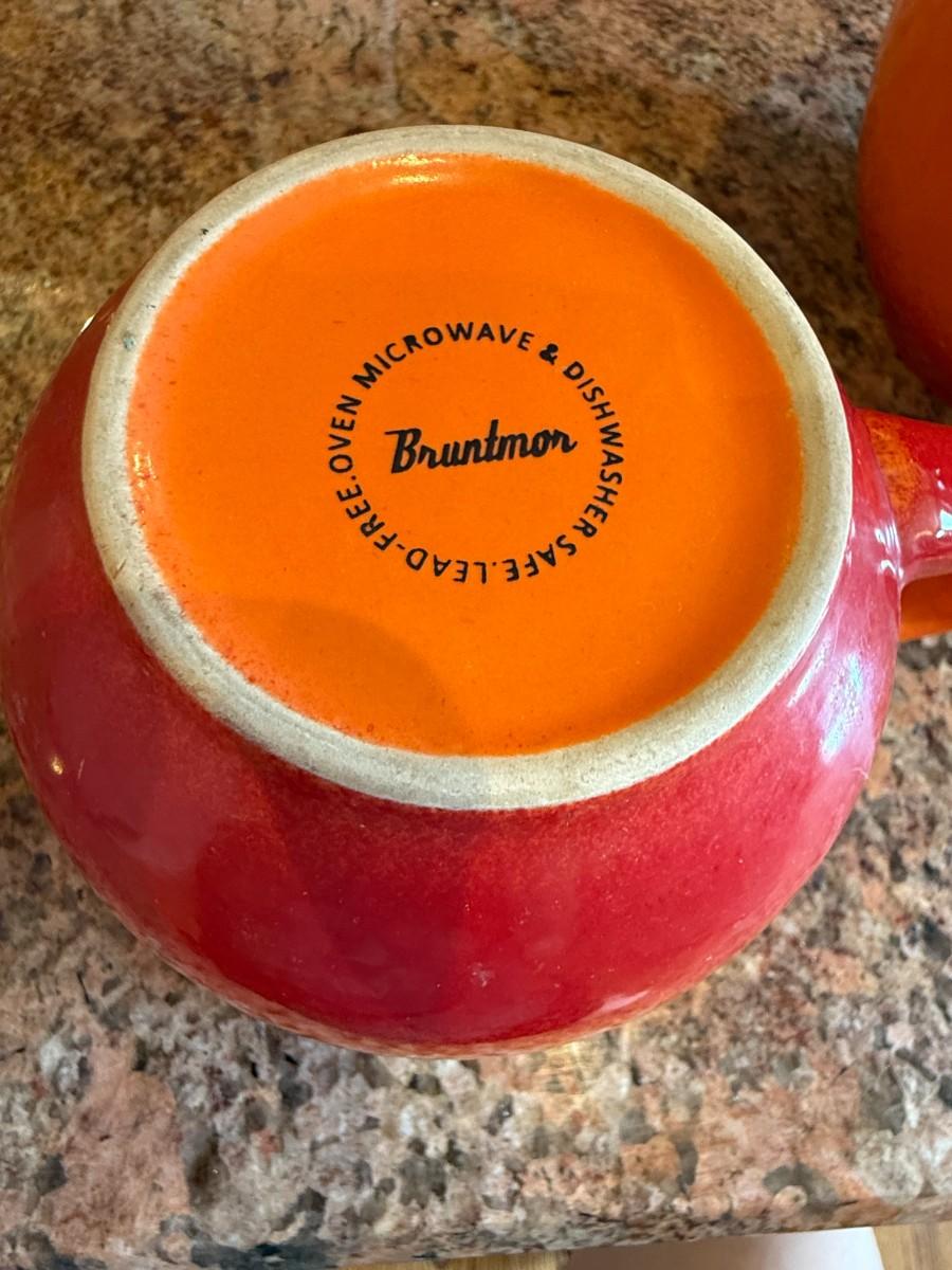 Bright and bold oversized stoneware mugs by Bruntmor—great for soups, chili, or latte lovers. Microwave, oven, and dishwasher safe.