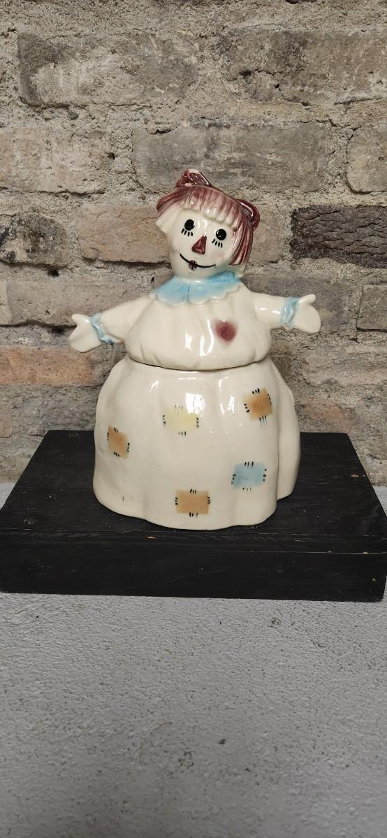 Neat vintage Brush Pottery Mygsie and Mae...sometimes called Raggedy Ann Cookie Jar